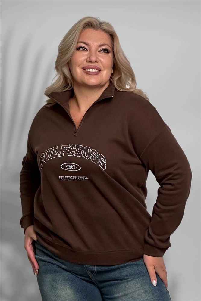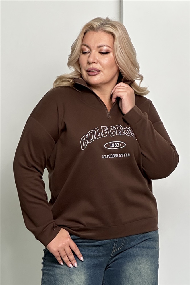 Цвет: Коричневый Фасон: Толстовка Материал: Трикотаж Длина рукава: Длинный рукав Параметры модели: Рост 173 см, Размер 54 Толстовка ворот стойка с молнией на груди с вышивкой коричневая