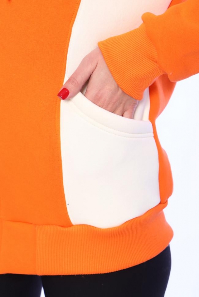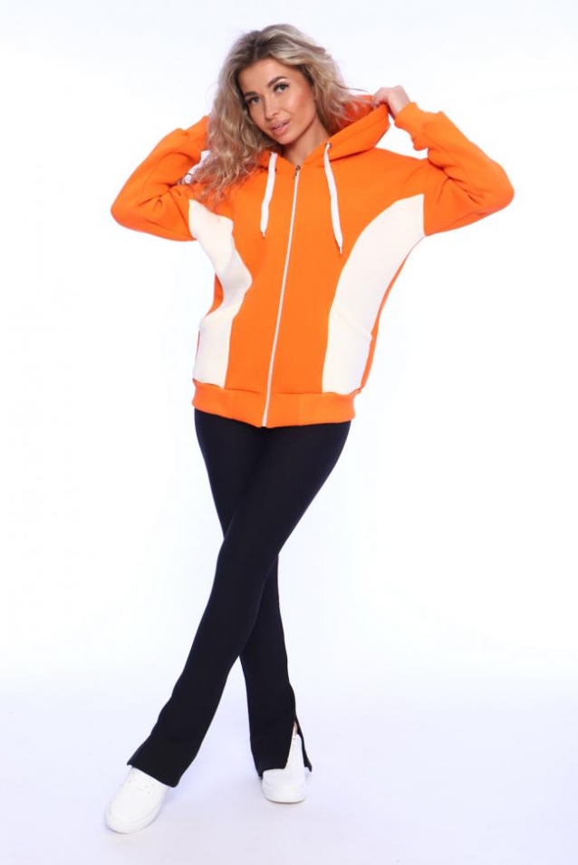 Стильная толстовка с капюшоном выполнена из качественного футера 3-нитки с начёсом . Манжеты снизу и на рукавах из кашкорсе ,спереди вертикальная молния.