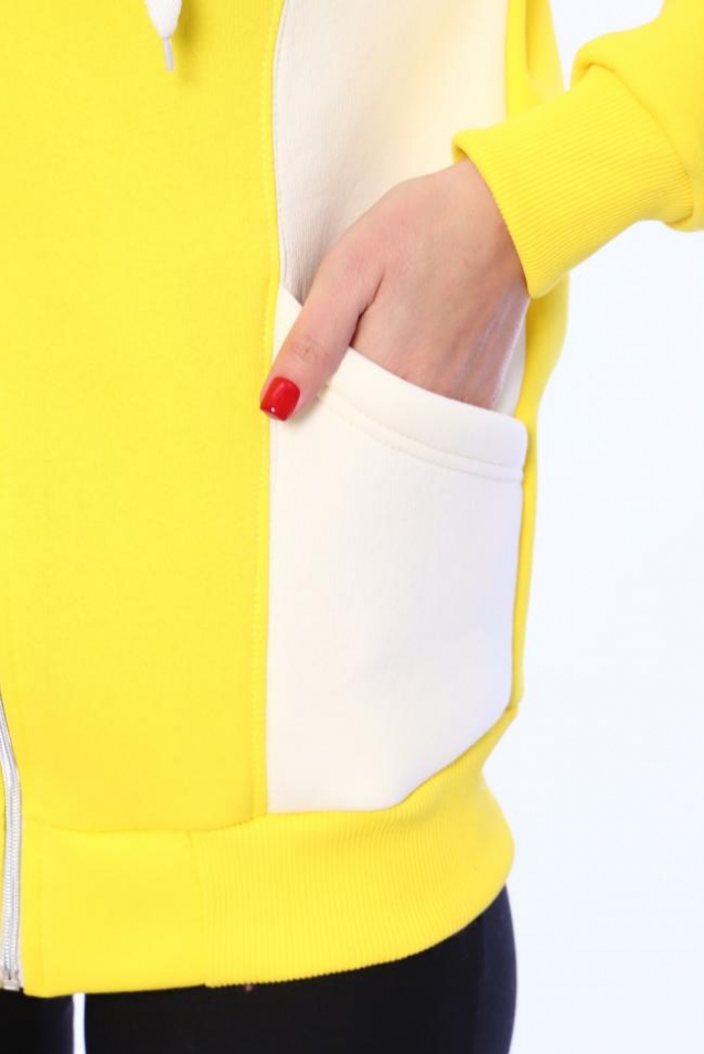 Стильная толстовка с капюшоном выполнена из качественного футера 3-нитки с начёсом . Манжеты снизу и на рукавах из кашкорсе ,спереди вертикальная молния.