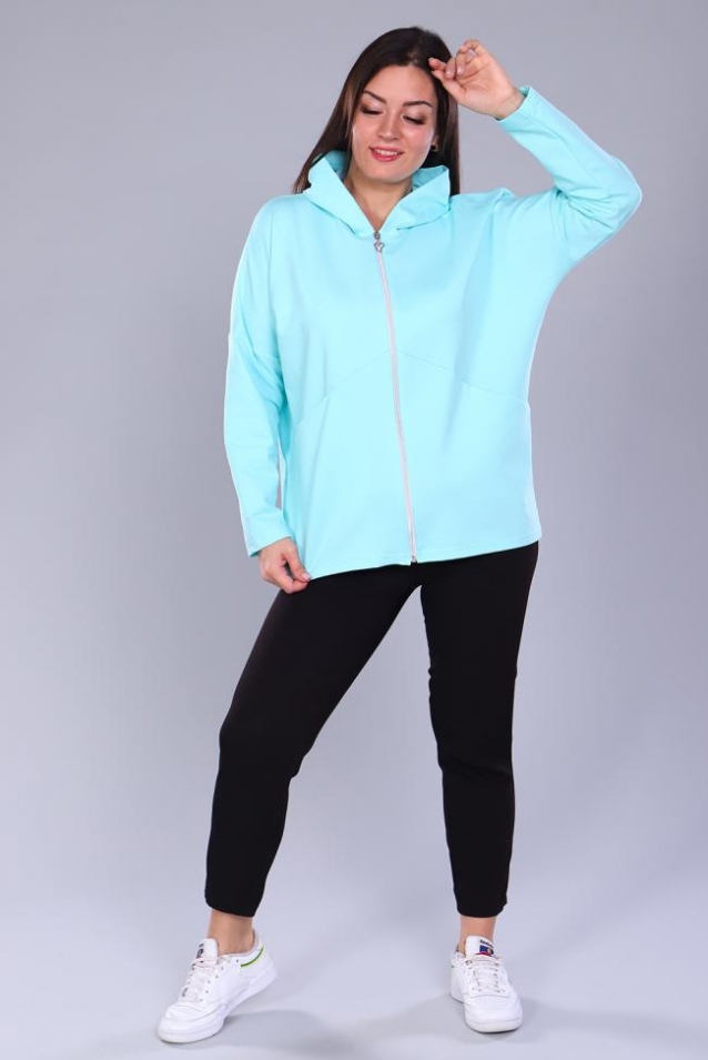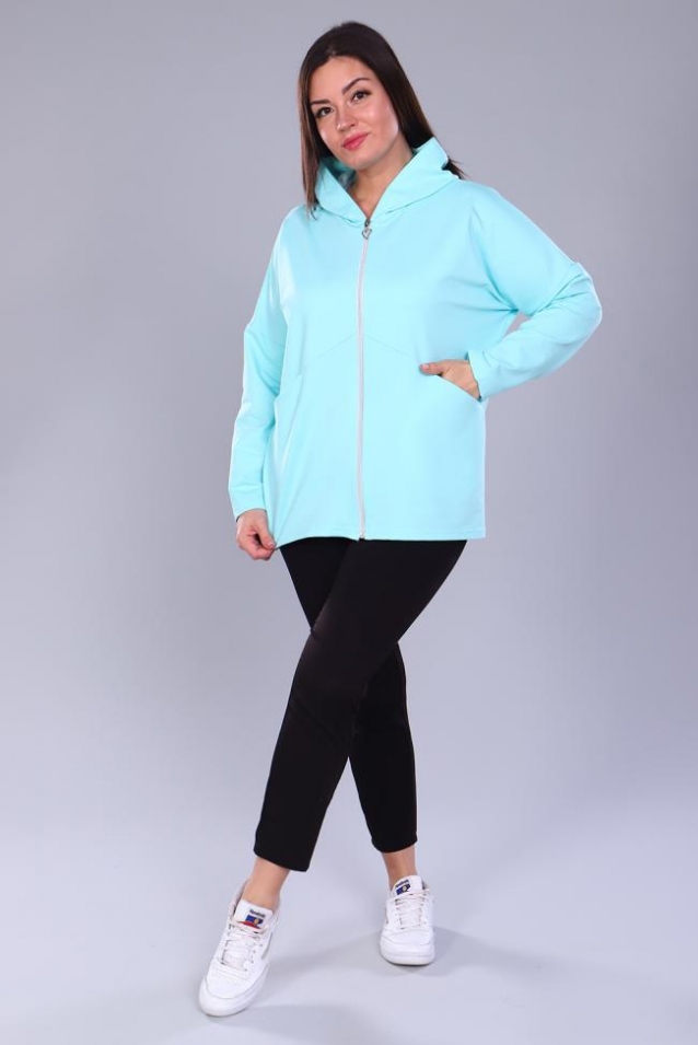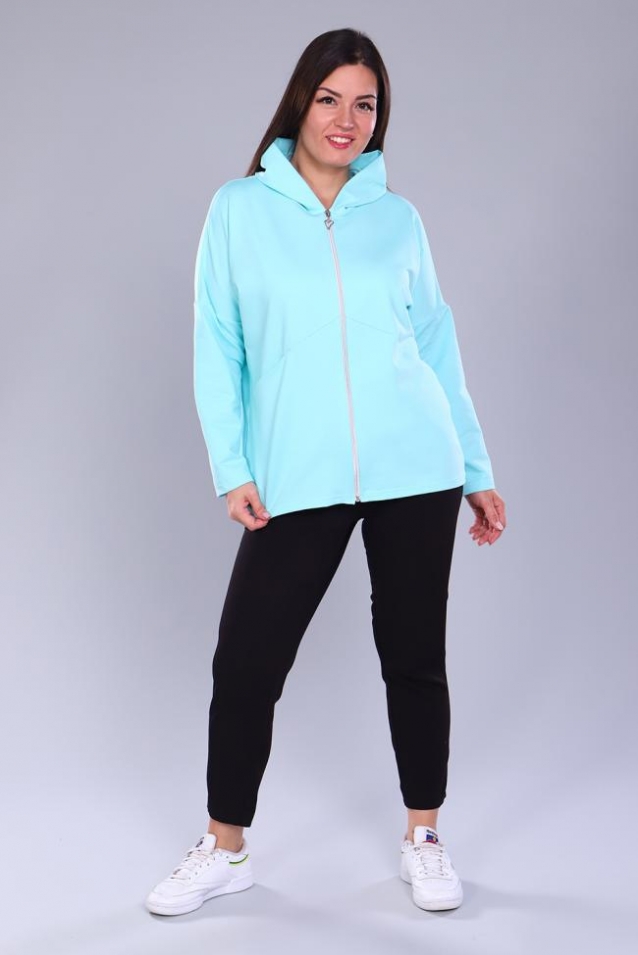 Толстовка женская из футера 2-х нитки пенье качества. Толстовка на молнии с капюшоном, с карманами, длина до середины бедра. Рукав спущенный очень удобный.