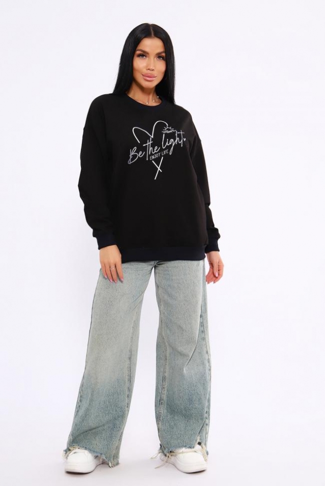 Толстовка с карманами из мягкого футера свободного кроя со спущенной линией плеча. Принт в виде сердечка. Горловина, манжеты и пояс из эластичного кашкорсе.