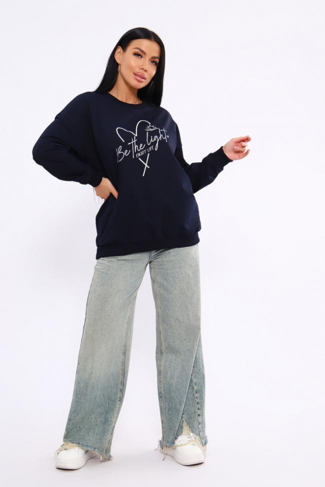 Толстовка с карманами из мягкого футера свободного кроя со спущенной линией плеча. Принт в виде сердечка. Горловина, манжеты и пояс из эластичного кашкорсе.