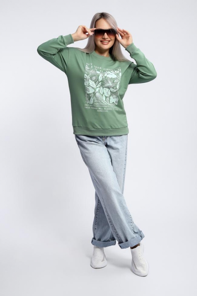 Толстовка свободного кроя оверсайз со спущенной линией плеча прекрасный вариант для прохладной погоды! Мягкое, эластичное кашкорсе в тон ткани использовано для отделки горловины, манжет и пояса. На полочке декоративный принт.