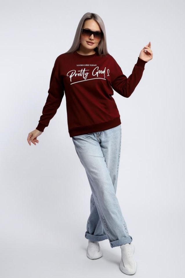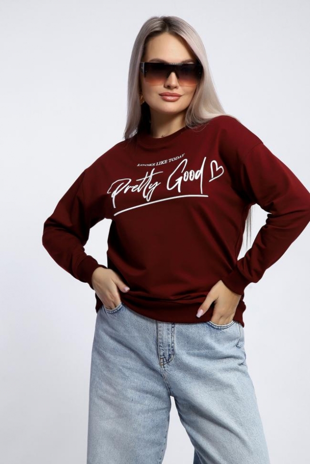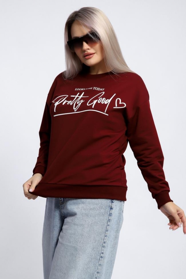 Толстовка свободного кроя оверсайз со спущенной линией плеча прекрасный вариант для прохладной погоды! Мягкое, эластичное кашкорсе в тон ткани использовано для отделки горловины, манжет и пояса. На полочке декоративный принт.
