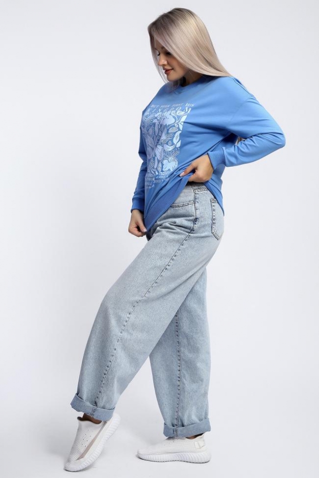 Толстовка свободного кроя оверсайз со спущенной линией плеча прекрасный вариант для прохладной погоды! Мягкое, эластичное кашкорсе в тон ткани использовано для отделки горловины, манжет и пояса. На полочке декоративный принт.