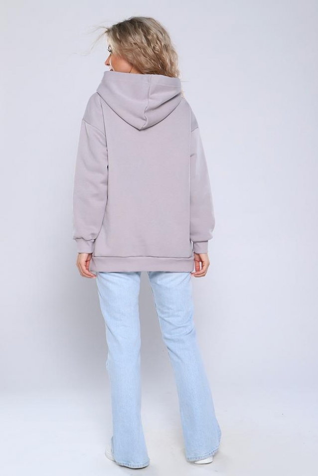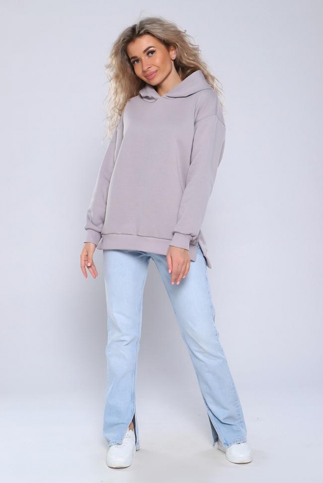 Толстовка с длинными рукавами на манжетах, удобным капюшоном и небольшими разрезами в боковых швах. Спинка удлиненная. Свободный крой и мягкая ткань придадут Вам ощущение уюта.