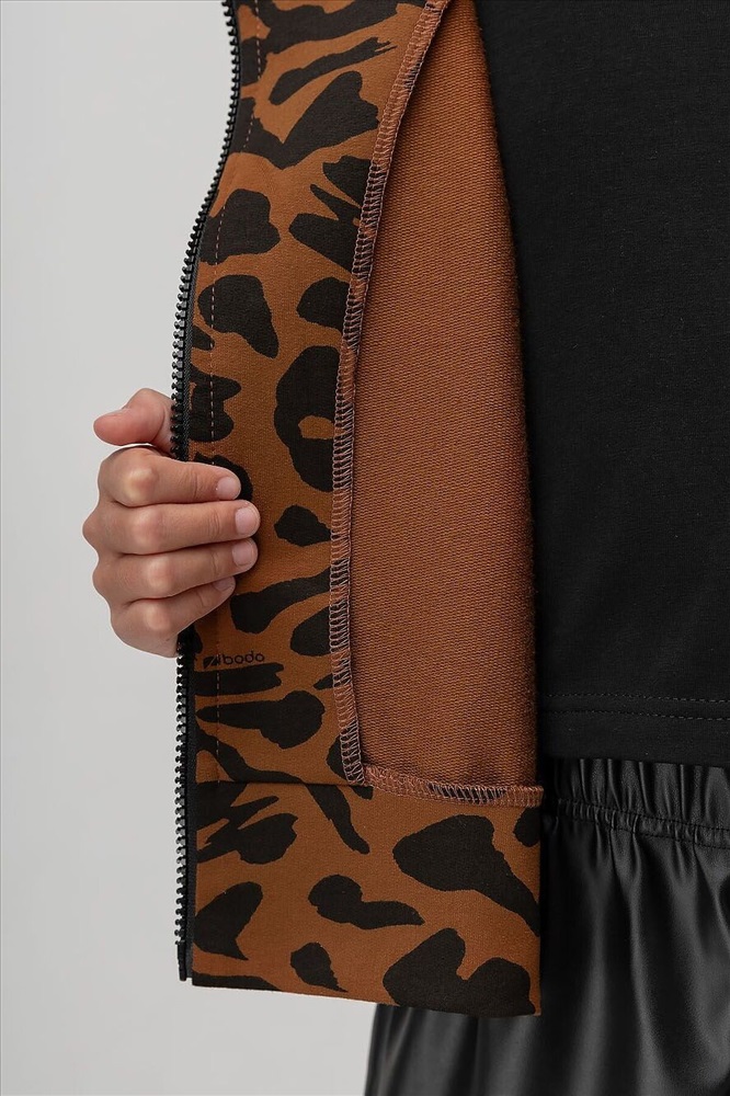 Производитель: BODO ID товара: 1201936 Состав: Хлопок 92%, Лайкра 8% Сезон: Демисезон Длина: Укороченная Фасон: Прямой Рукав: Длинные Вид застежки: Молния Вырез горловины: Капюшон Рисунок: леопардовый Декоративные элементы: Принт Основная ткань: Хлопок Стиль: Повседневный Страна бренда: Россия Страна производства: Россия