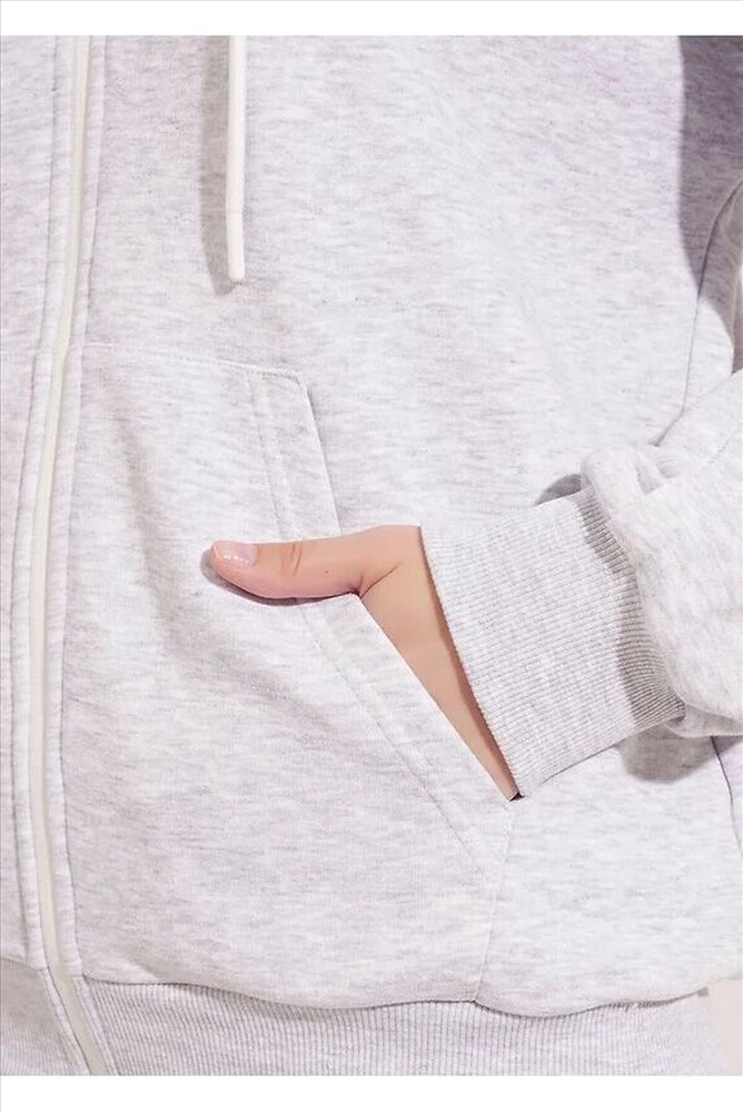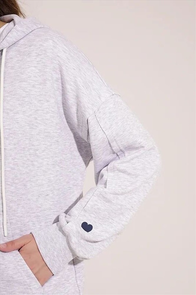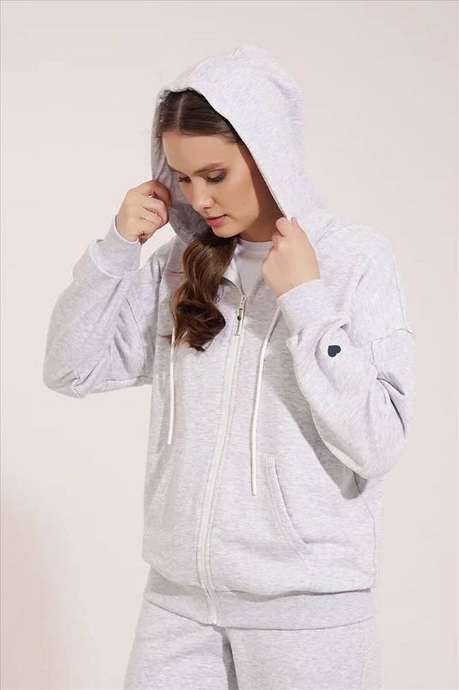 Куртка спортивная из трикотажного полотна футер,на молнии. По горловине капюшон на подкладе со шнуром. Длинный рукав со спущенной линией плеча, нашивка.По низу рукава и изделия манжеты. Спереди карман кенгуру, принт.По пройме и шву рукава открытый срез.