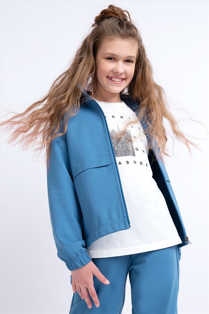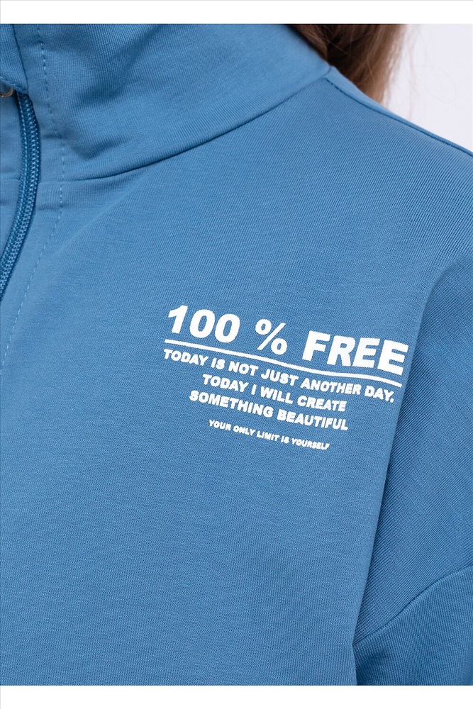 Толстовка со стойкой из эластичного футера. Для удобства застежка на молнии. Спереди карман "кенгуру" с актуальной деталью внахлест. Рукава и низ на эластичной манжете. Принт украшает переднюю часть изделия.