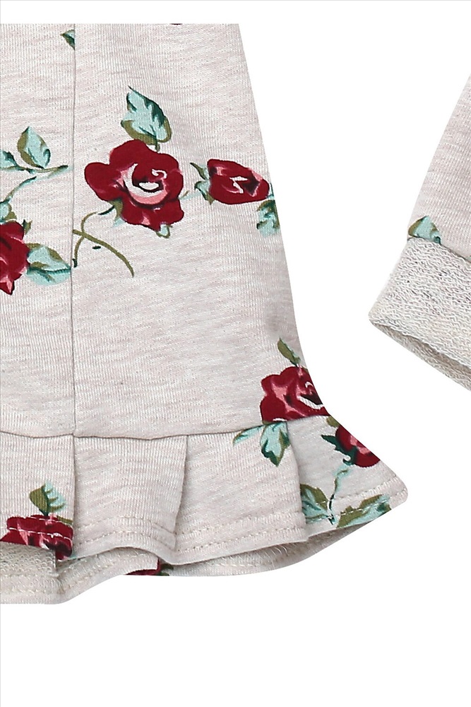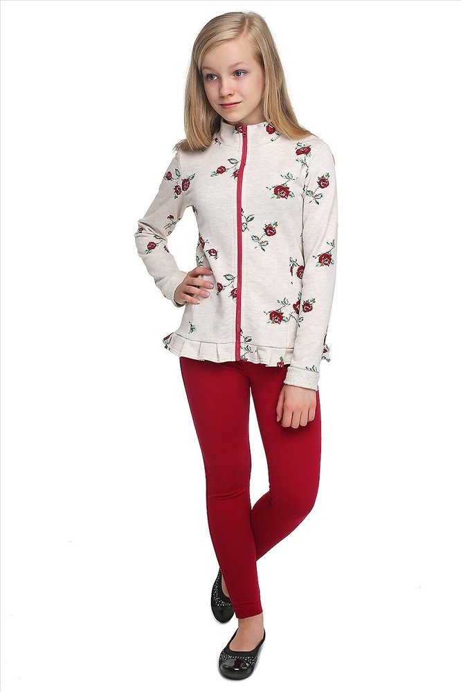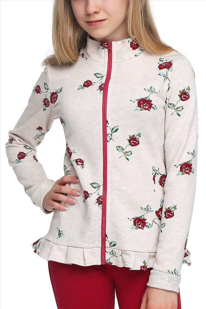 Романтичная куртка из футера на молнии. Низ изделия оформлен оборкой в складку. По переду рельефы для приталивания силуэта . Низ рукава с манжетой из изнаночной стороны полотна. горловина со стойкой . впереди тематический принт