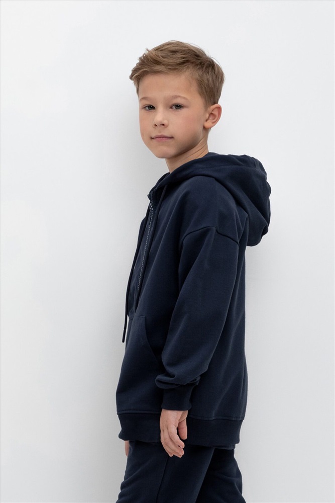 Трикотажная куртка для мальчика из петельчатого футера. Спереди удобные карманы. Манжеты и пояс из эластичного трикотажа в рубчик.