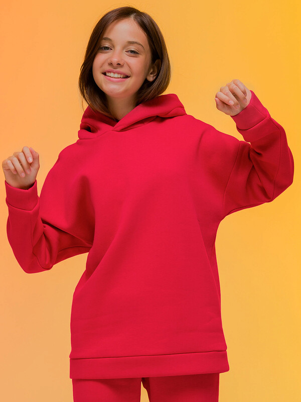 Худи для девочек и мальчиков из футера с начесом свободного силуэта с длинным рукавом, без карманов. Это однотонная базовая вещь для детского гардероба. Красивая и яркая одежда для ребенка, практичная и удобная при надевании для родителей. Двухшовный капюшон с подкладом из основного материала аккуратно ложится по голове и убережет от холода. Манжеты рукавов и низа изделия из основной ткани. Не утягивают, но придают силуэт. Деликатная изюминка модели - силиконовая буква P из логотипа бренда на правом рукаве.