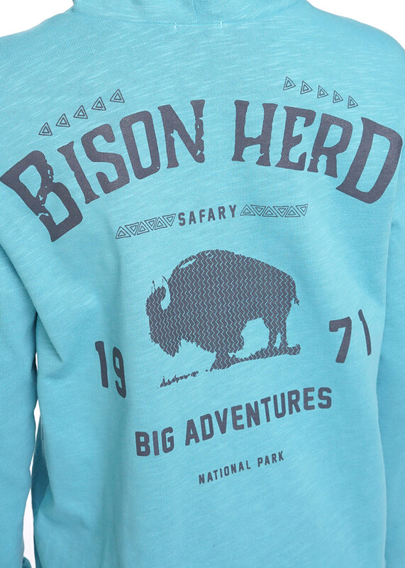 Удобная толстовка с капюшоном из плотного флама.По низу рукавов и изделия - манжеты.В капюшон вставлен шнур с цветными закрепками.Карман кенгуру дополнен дизайнерской нашивкой. На спинке крупный принт