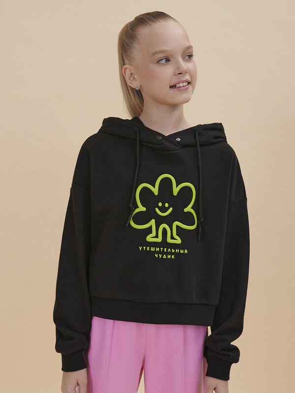 Состав: 80%хлопок 20%полиэстер Стильное укороченное худи для девочек. Худи из футера трендового оверсайз-силуэта со спущенным плечом подарит ребёнку комфорт и не будет стеснять его движений. Худи с капюшоном с двумя швами, что обеспечивает анатомически правильную форму и комфортную посадку по голове. Худи однотонное, с принтом, по низу изделия и рукавов манжета из рибаны. За толстовкой легко ухаживать. В составе ткани преобладает высококачественный хлопок — худи мягкое и отлично пропускает воздух, позволяя коже ребёнка дышать. Благодаря эластану изделие сохраняет великолепную форму в течение долгого времени. Джемпер выполнен в двух актуальных цветах: зеленом и черном. Его легко сочетать с любыми брюками, легинсами, джинсами. В линейке представлены следующие размеры: 1 (86); 2 (92); 3 (98); 4 (104); 5 (110); 6 (116); 7 (122); 8 (128); 9 (134); 10 (140); 11 (146). Худи детское подходит девочкам дошкольного возраста, младшим школьницам и девочкам-подросткам. Модель идеальна для детского сада, прогулок, отдыха, её можно носить дома. Худи без начёса оверсайз подходит для круглогодичного применения: летом, осенью, зимой, весной и демисезон. Это замечательный подарок дочери, внучке или сестре на День рождения и любой другой праздник. Выбирайте нужный размер по таблице размеров на фото. Цвет товара на экране вашего устройства может отличаться от цвета изделия вживую. Комментарии к товару
