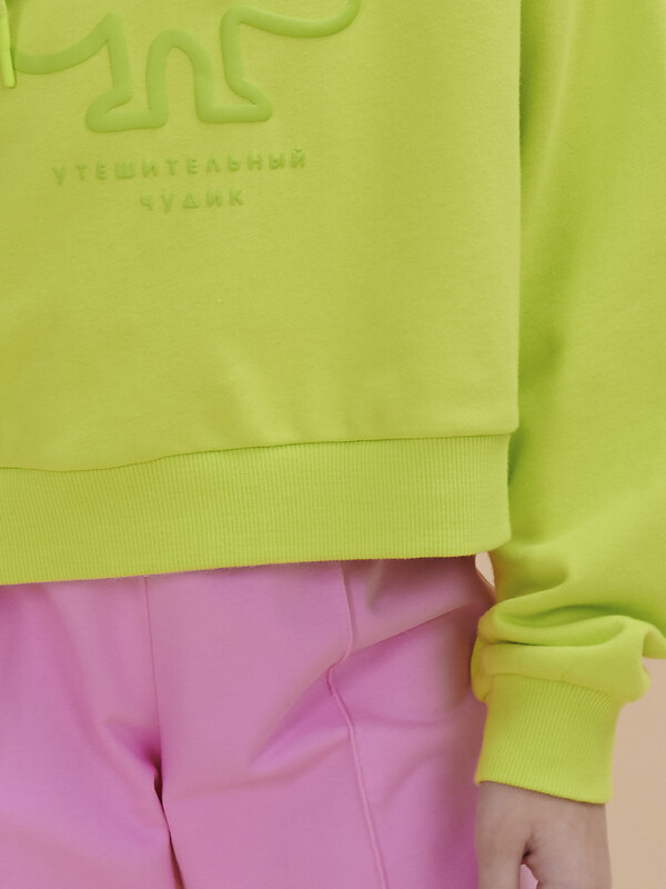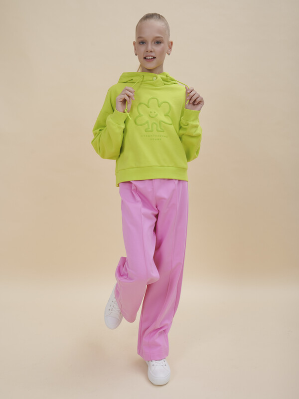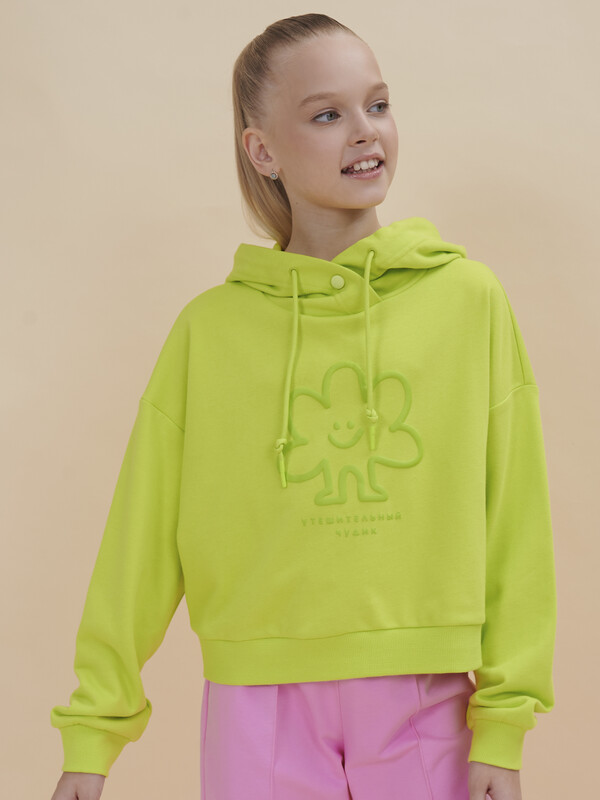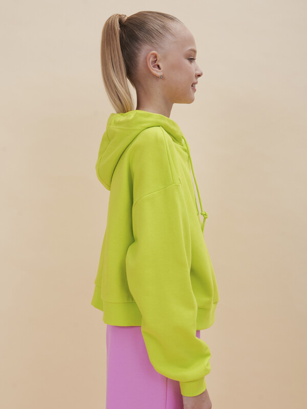 Стильное укороченное худи для девочек. Худи из футера трендового оверсайз-силуэта со спущенным плечом подарит ребёнку комфорт и не будет стеснять его движений. Худи с капюшоном с двумя швами, что обеспечивает анатомически правильную форму и комфортную посадку по голове. Худи однотонное, с принтом, по низу изделия и рукавов манжета из рибаны. За толстовкой легко ухаживать. В составе ткани преобладает высококачественный хлопок — худи мягкое и отлично пропускает воздух, позволяя коже ребёнка дышать. Благодаря эластану изделие сохраняет великолепную форму в течение долгого времени. Джемпер выполнен в двух актуальных цветах: зеленом и черном. Его легко сочетать с любыми брюками, легинсами, джинсами. В линейке представлены следующие размеры: 1 (86); 2 (92); 3 (98); 4 (104); 5 (110); 6 (116); 7 (122); 8 (128); 9 (134); 10 (140); 11 (146). Худи детское подходит девочкам дошкольного возраста, младшим школьницам и девочкам-подросткам. Модель идеальна для детского сада, прогулок, отдыха, её можно носить дома. Худи без начёса оверсайз подходит для круглогодичного применения: летом, осенью, зимой, весной и демисезон. Это замечательный подарок дочери, внучке или сестре на День рождения и любой другой праздник. Выбирайте нужный размер по таблице размеров на фото. Цвет товара на экране вашего устройства может отличаться от цвета изделия вживую.