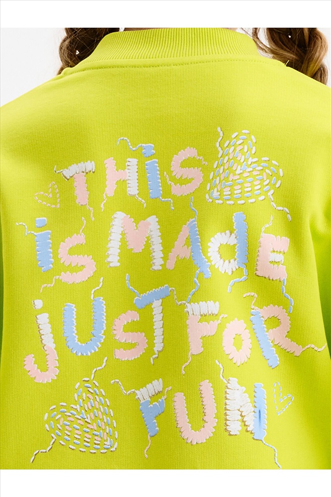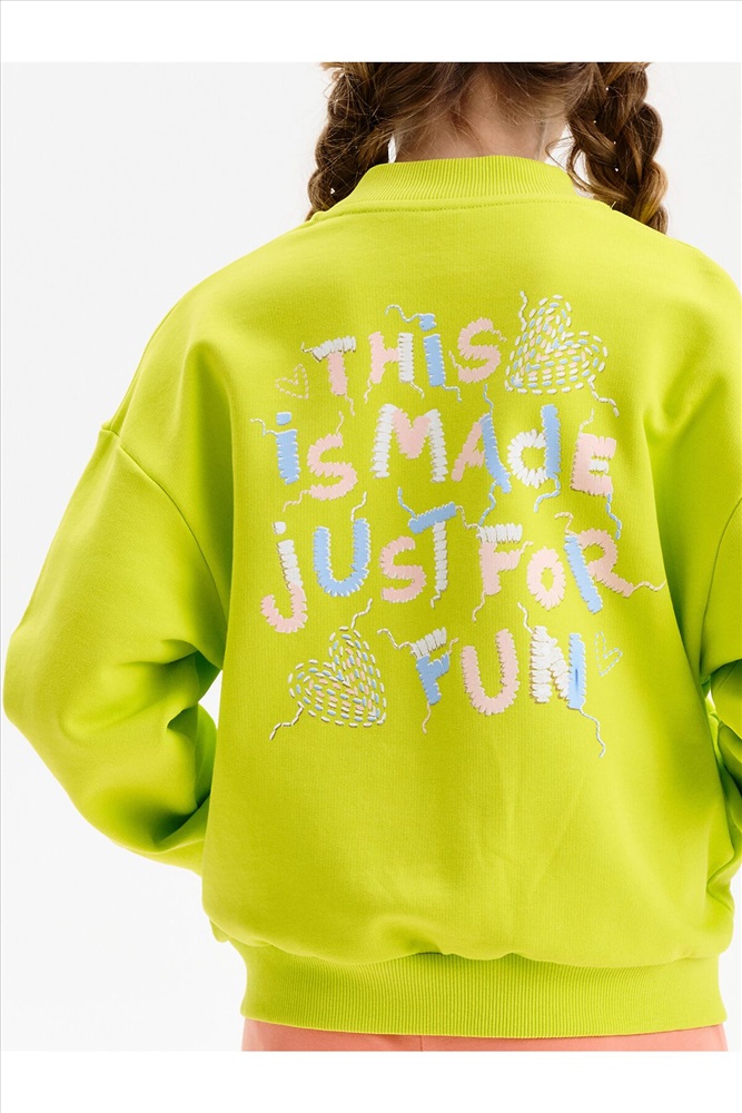 ID товара: 1236454 Состав: 100%хлопок Сезон: Демисезон Рукав: Длинные Вид застежки: Молния Страна бренда: Россия Страна производства: Китай Толстовка oversize для девочки. Модель средней длины из мягкого хлопкового футера, плотностью 342 гр/кв м. Свободный крой с объёмом по линии груди и низа, мягкое спущенное плечо. Застёжка на центральную молнию. Узкий воротник-стойка и плотные манжеты на рукавах и по низу изделия из эластичной рибаны создают стильную имитацию бомбера. По бокам — удобные прорезные карманы с листочки. Перевод: ЭТО СДЕЛАНО ПРОСТО ДЛЯ РАЗВЛЕЧЕНИЯ (ПО ФАНУ, ПО ПРИКОЛУ - СЛЕНГ) Комментарии к товару