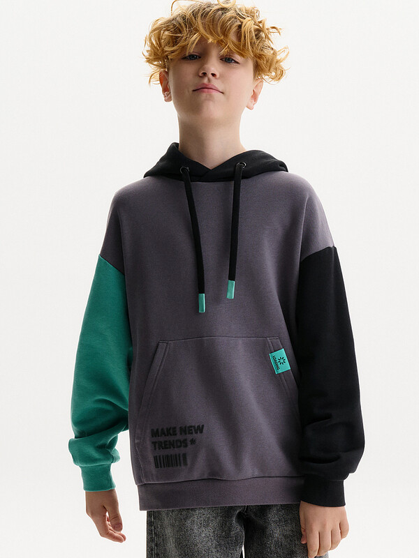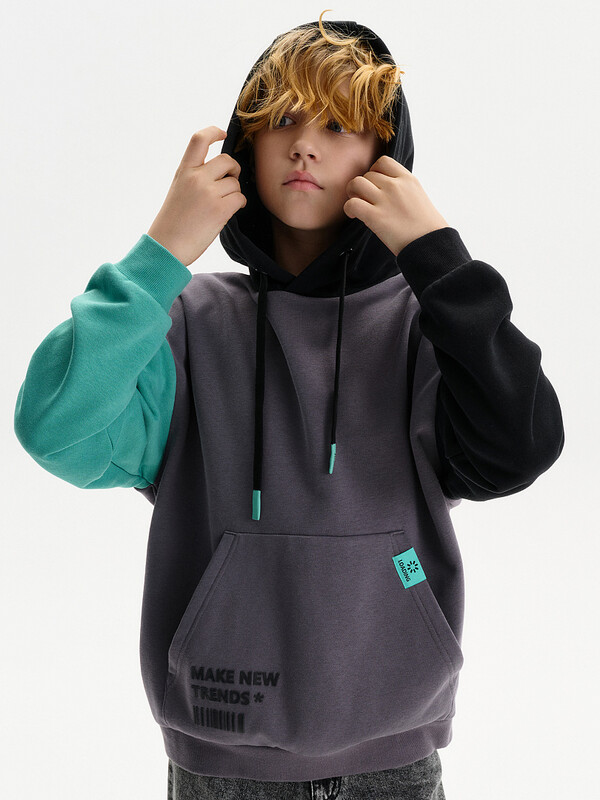 Состав: 87%хлопок 13%полиэстер Худи для мальчика без начеса – актуальная вещь в любом сезоне, будь то весна, лето или осень. Кофта спортивная для мальчика выполнена из плотного футера-петля, который отлично согревает в прохладную погоду и при этом хорошо пропускает воздух – ребенок активно двигается, играет, не потеет. Толстовка свободного покроя оверсайз со спущенным плечом, углубленной проймой. Рукава а также низ изделия на манжете из рибаны. Удобный карман кенгуру. Капюшон на запахе со шнурками для регулировки. Изделие выполнено в актуальном стиле Digital и понравится юным геймерам. По переду текстовый принт. Перевод принта "make new trends" - делай новые тренды. Размерный ряд подходит как для малышей так и для подростков. Комментарии к товару