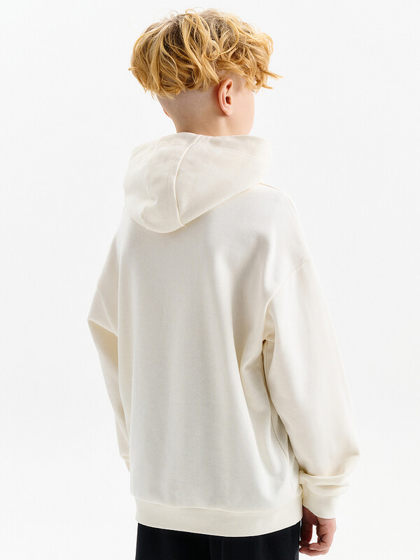 Худи из терри свободного покроя "оверсайз" со спущенным плечом, углубленной проймой. Низ рукава и низ изделия на манжете из рибаны. Капюшон двухшовный с запахом и люверсами, высота капюшона регулируется с помощью шнурка. Принт на шнурках капюшона: затяни и беги! Перевод спереди: карман--кенгуру.