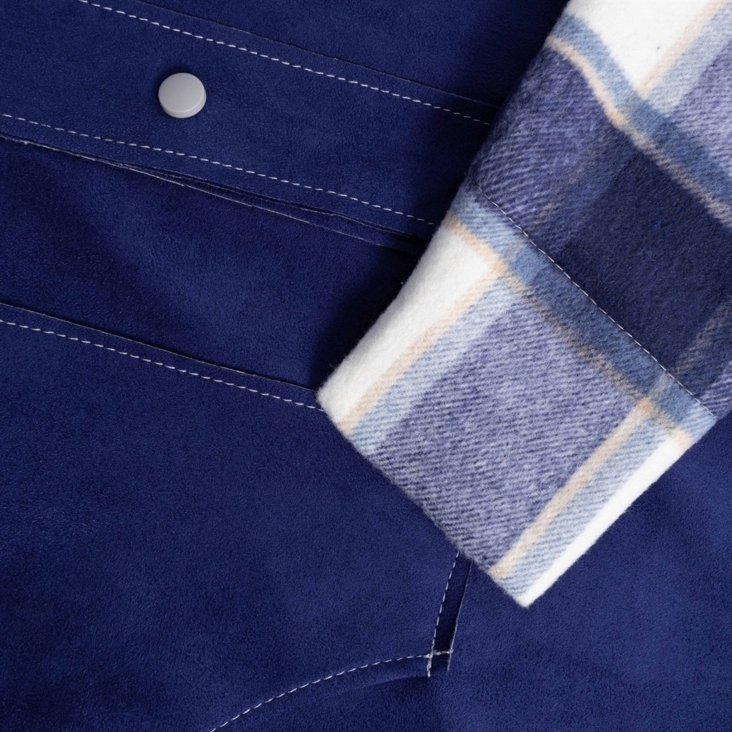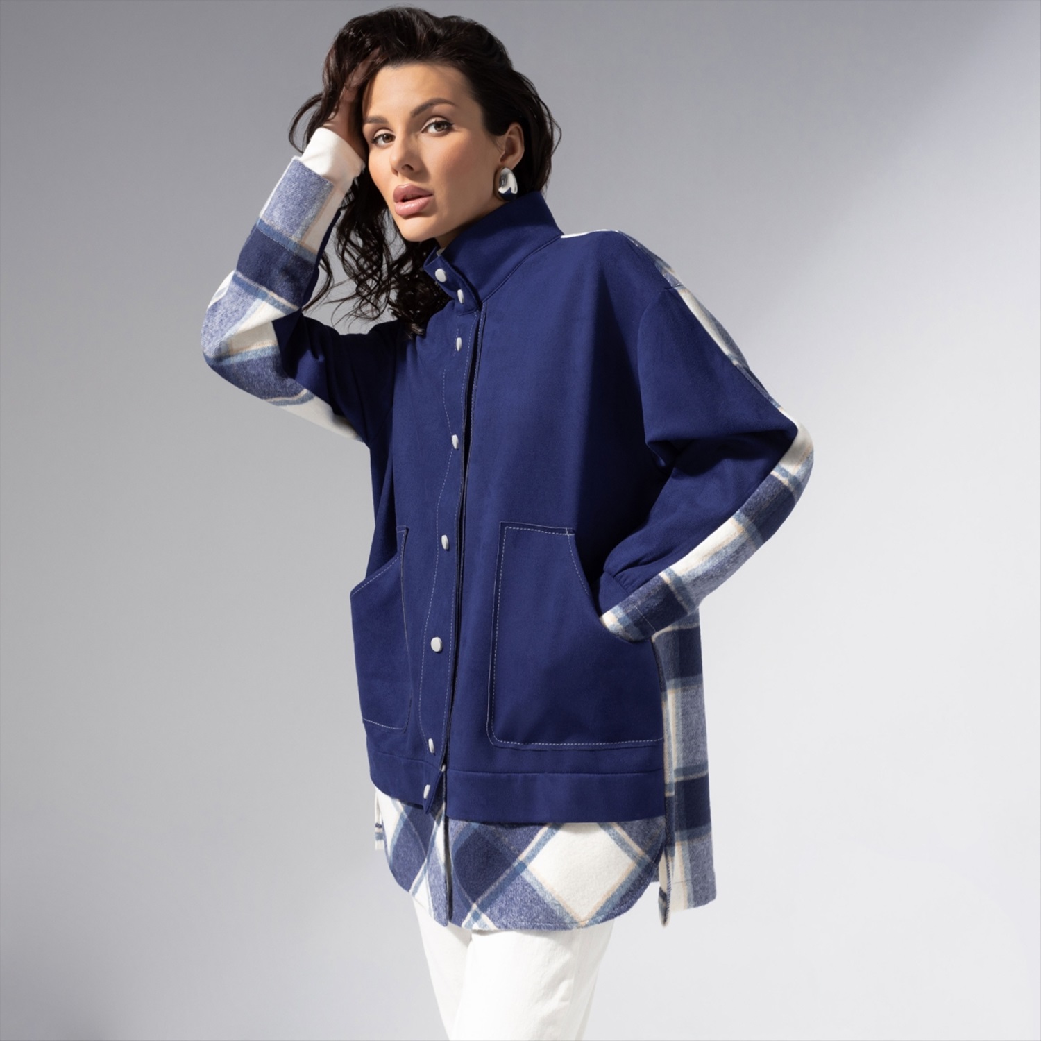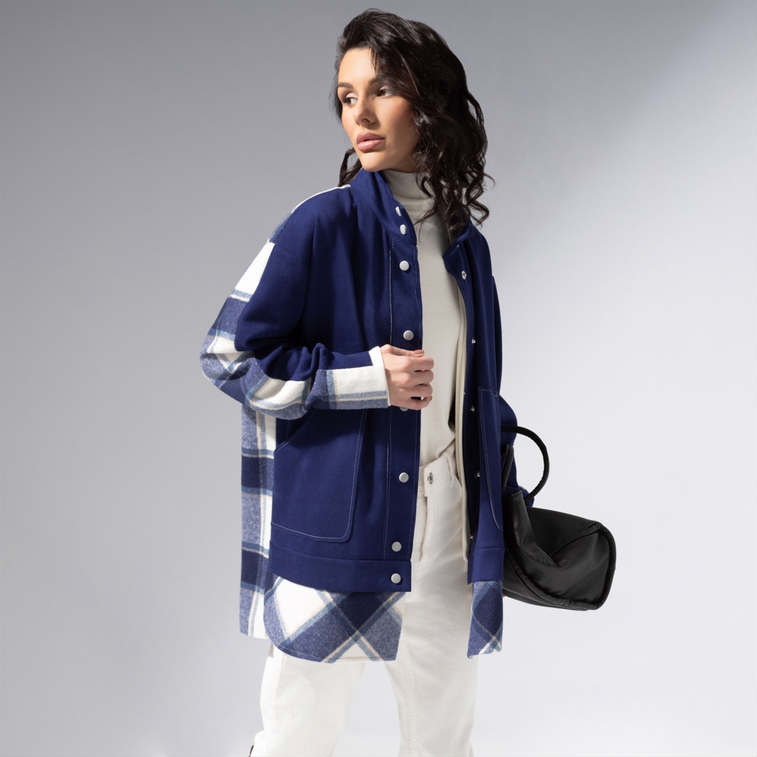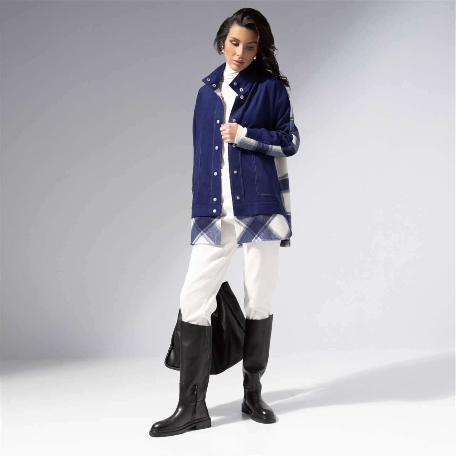 Комбинированная модель из мягкой экозамши и пальтовой фланели. Прямой силуэт, удобные карманы, контрастная отделка швов. Легко комбинируется с денимом и базовыми брюками.