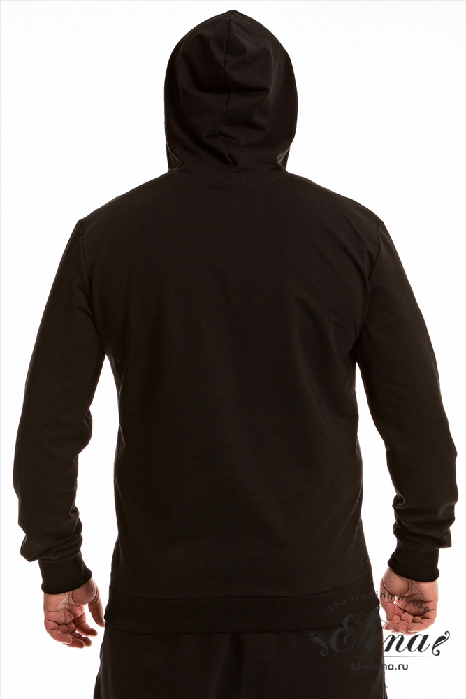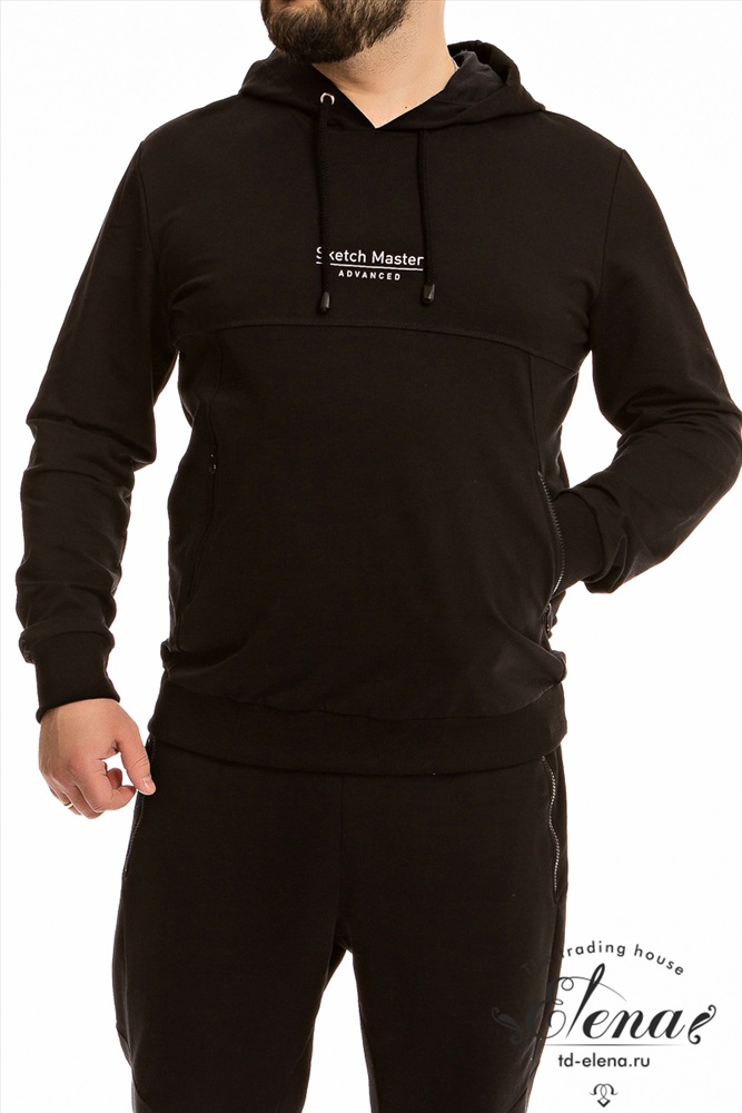Застежка: Без застежки С капюшоном: Да С карманами: Да Сезон: Всесезонный Силуэт: Прямой Состав: Хлопок 95% Лайкра 5% Цвет Номенклатуры: черный Мужская толстовка из футера петли с лайкрой черного цвета с капюшоном и длинными рукавами на манжетах обеспечивает комфорт в прохладную погоду. По бокам расположены два кармана на молнии, что позволяет удобно хранить мелочи или согреть руки. По низу толстовки притачной пояс обеспечивает хорошую посадку. Спереди на толстовке нанесен принт белого цвета, который добавляет изюминку и стильный акцент изделию. Эта толстовка идеально подойдет для повседневной носки, прогулок, спортивных мероприятий или активного образа жизни. Комментарии к товару