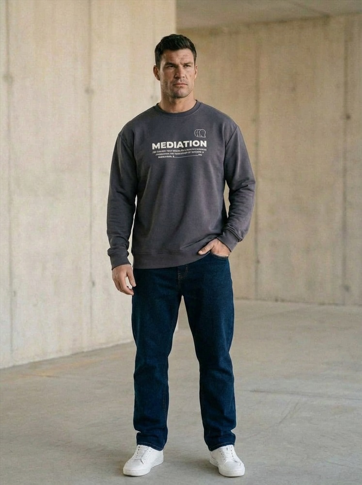 Застежка: Без застежки С капюшоном: Нет С карманами: Нет Сезон: Всесезонный Силуэт: Прямой Состав: Хлопок 95% Лайкра 5% Цвет Номенклатуры: серый Мужская толстовка выполнена из однотонного футера с лайкрой, мягкого и комфортного для повседневной носки. Модель имеет длинные слегка приспущенные рукава, что обеспечивает свободную посадку и удобство в движении. Горловина оформлена притачной планкой, манжеты и пояс выполнены в тон основному материалу, создавая аккуратный и завершённый вид. Спереди расположен стильный принт, который добавляет изделию современный характер. Толстовка отлично подходит для прогулок, отдыха и повседневного гардероба. Комментарии к товару