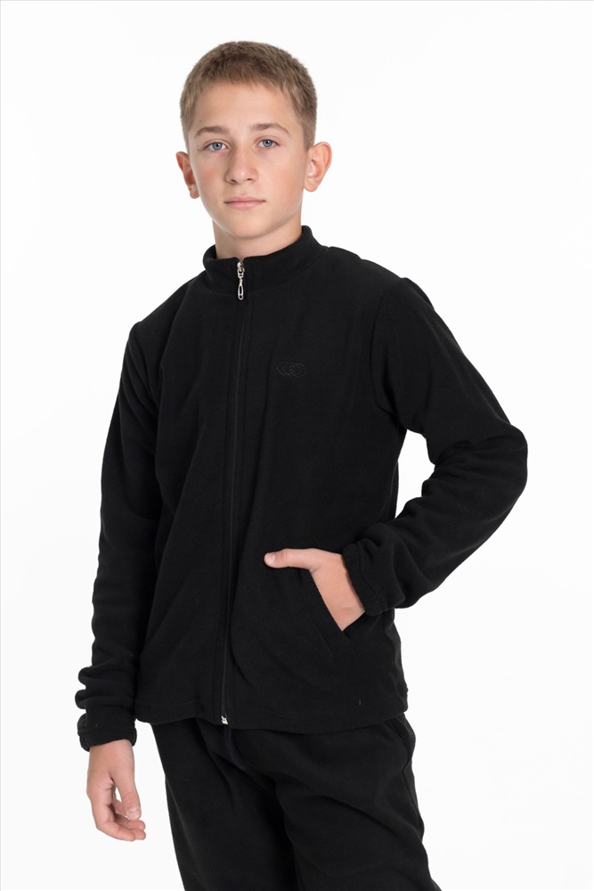 С капюшоном: Да С карманами: Нет Сезон: Всесезонный Силуэт: Прямой Состав: Полиэстер 100% Цвет Номенклатуры: черный Толстовка для мальчика из поларофлиса в черном цвете станет отличным дополнением к гардеробу мальчика. Поларофлис обеспечивает тепло и комфорт в прохладные дни. Прямой крой и центральная застежка на молнии придают изделию классический и стильный вид. Воротник-стоечка и вышивка на левой полочке добавляют интересный акцент к образу. Длинные рукава и карманы делают эту толстовку еще более практичной и удобной. Она подойдет для повседневной носки и активного отдыха. Комментарии к товару