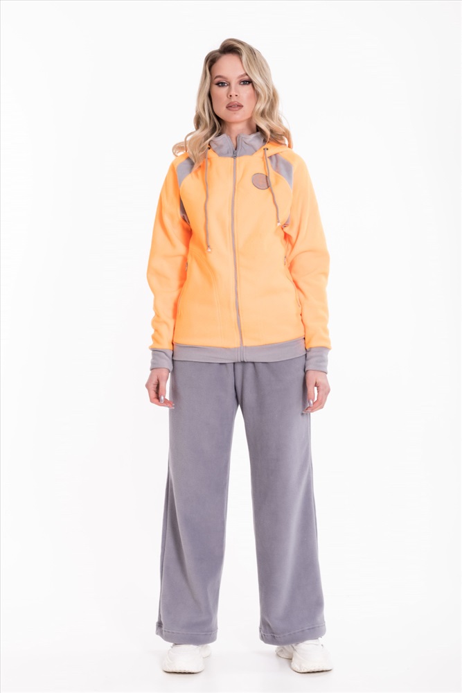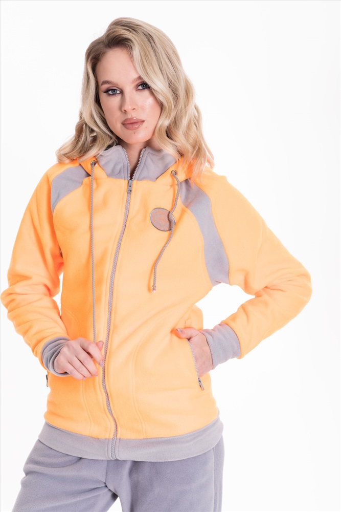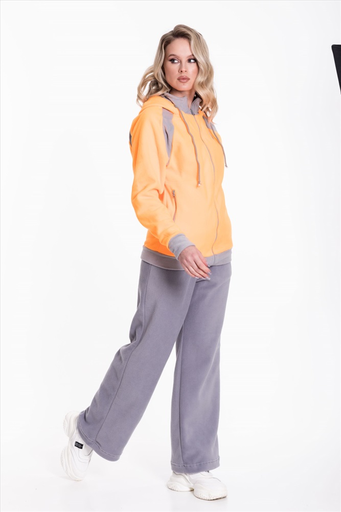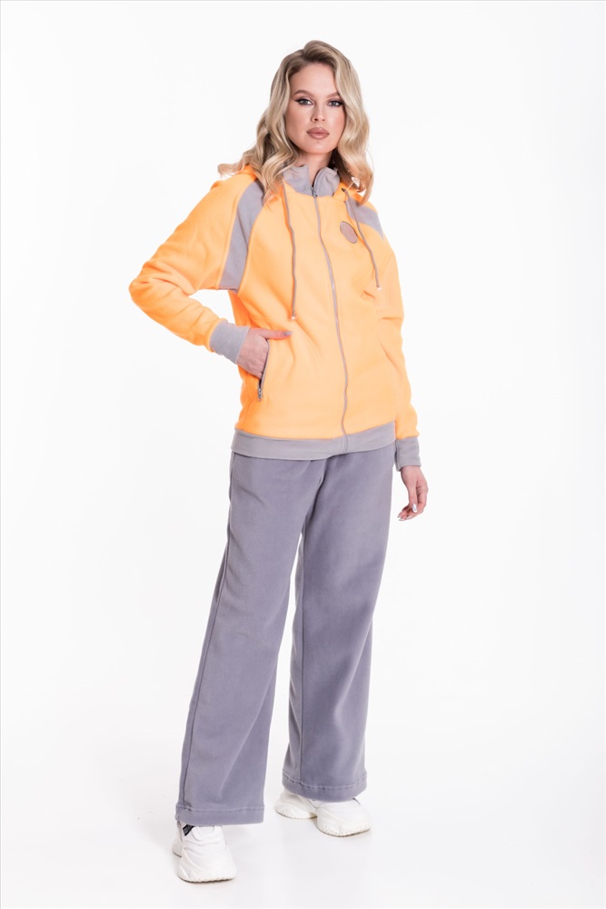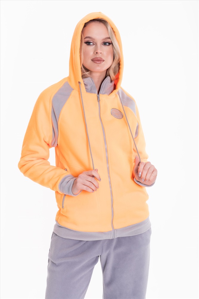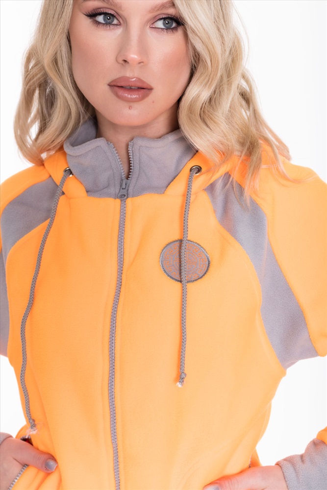 Застежка: Молния С капюшоном: Да С карманами: Да Сезон: Зимний Силуэт: Свободный Состав: Полиэстер 100% Цвет Номенклатуры: оранжевый Толстовка выполнена из флиса с отделочными вставками контрастного цвета. Покрой свободный, рукава реглан. Спереди застёжка на молнию. Через люверсы капюшона проложен шнур. По бокам размещены карманы на молнии. С левой стороны вышивка. Комментарии к товару
