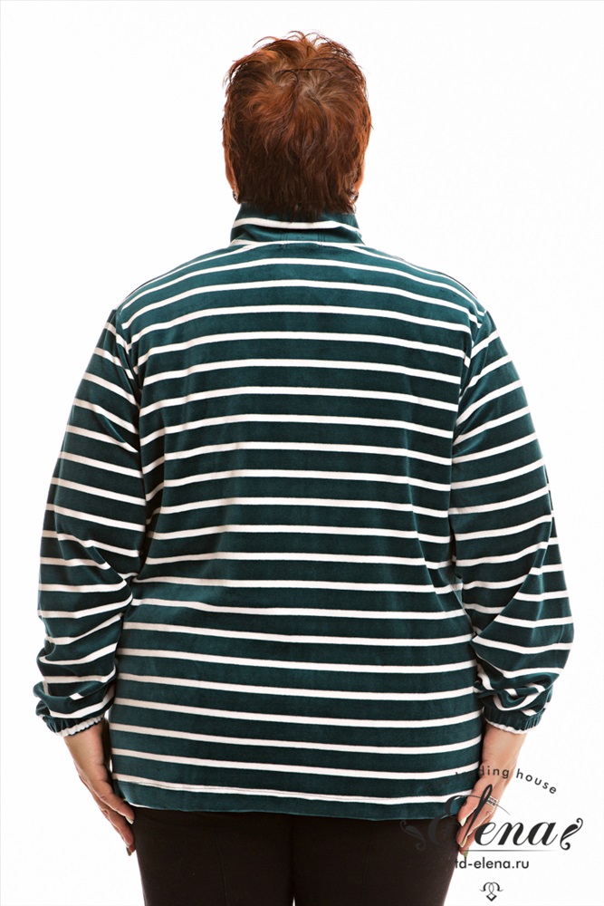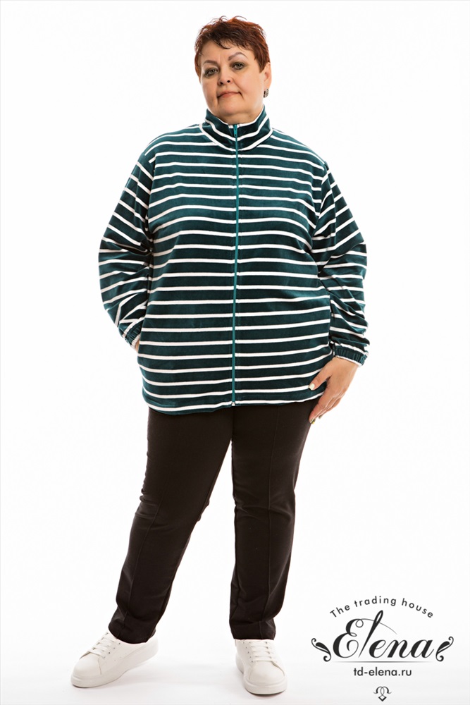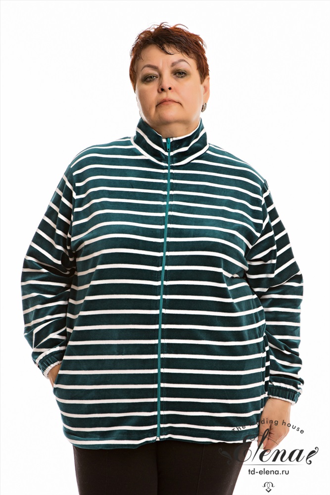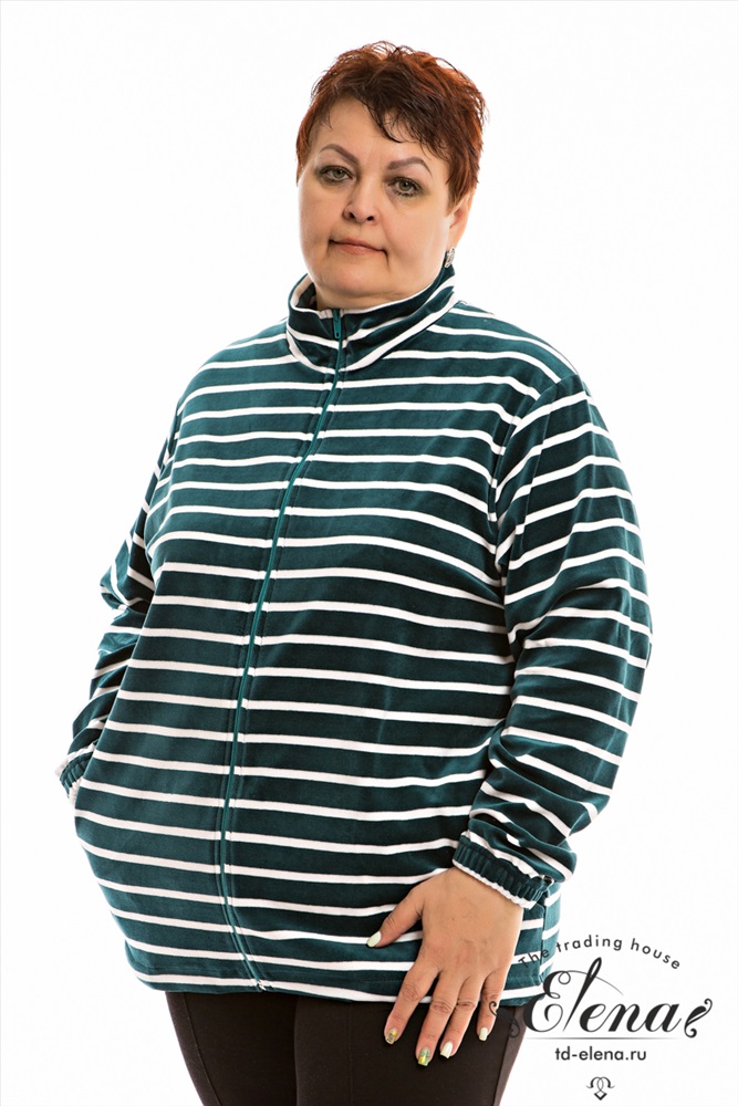 Застежка: Молния С капюшоном: Нет С карманами: Да Сезон: Зимний Силуэт: Прямой Состав: Хлопок 80% Полиэстер 20% Цвет Номенклатуры: изумрудный Женская толстовка выполнена из велюра в полоску. Спереди застёжка на разъёмную молнию, воротник-стойка. Длинные рукава с манжетами на резинке. В боковых швах размещены карманы. Стильная и практичная толстовка идеальна для улицы или в качестве домашней одежды. Комментарии к товару