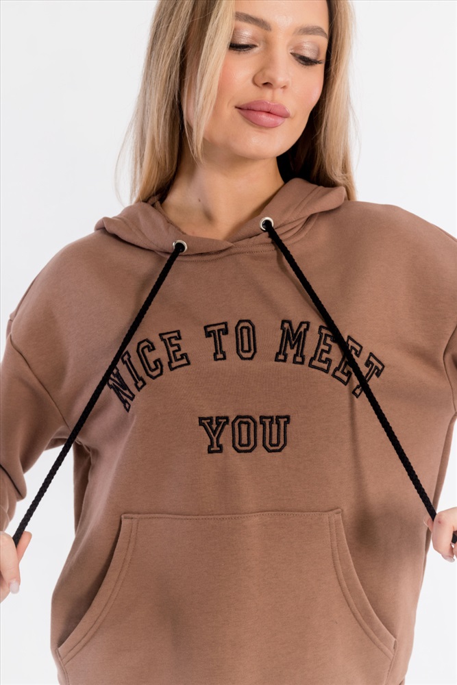 Эта толстовка станет отличным выбором для повседневной носки, прогулок или активного отдыха. Коричневый цвет придаст вашему образу теплоту и естественность, а стильный дизайн и удобство использования сделают ее незаменимой частью вашего гардероба.