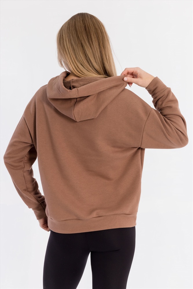 Женская толстовка из однотонного футера 3-х нитки (воздушка) в коричневом цвете.