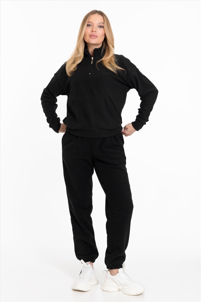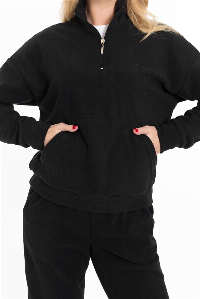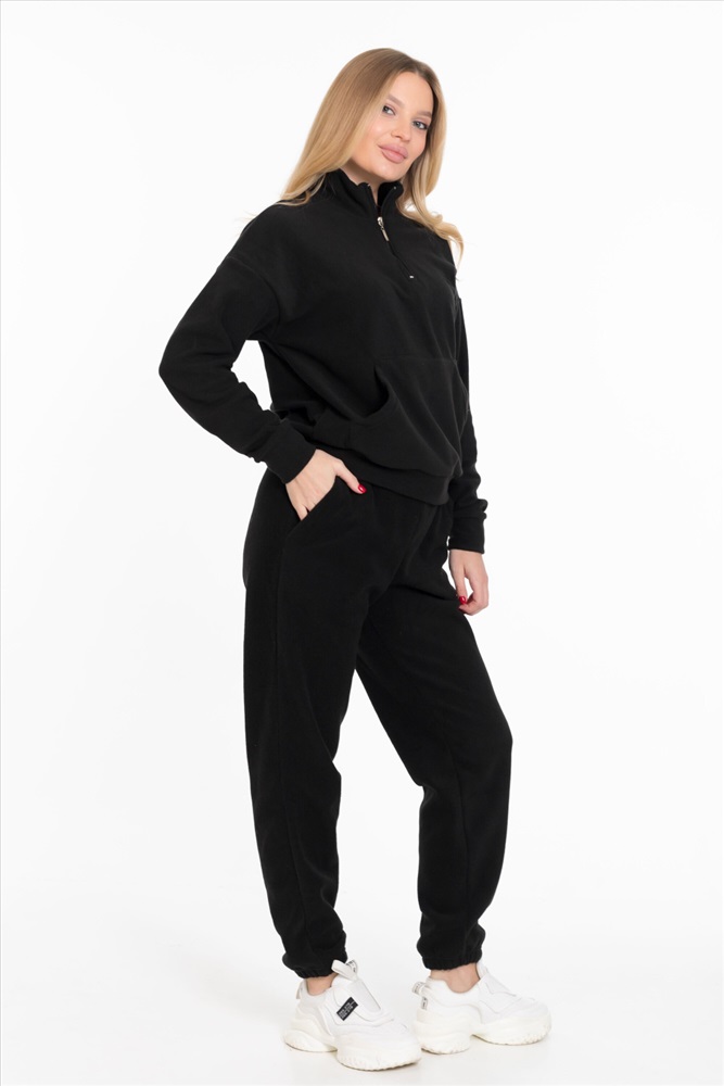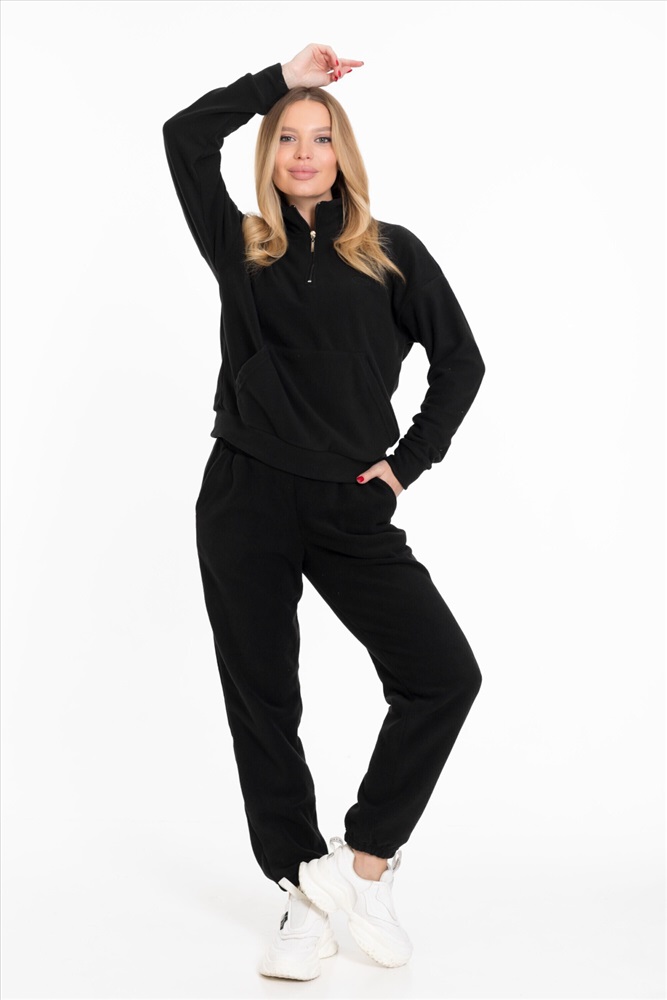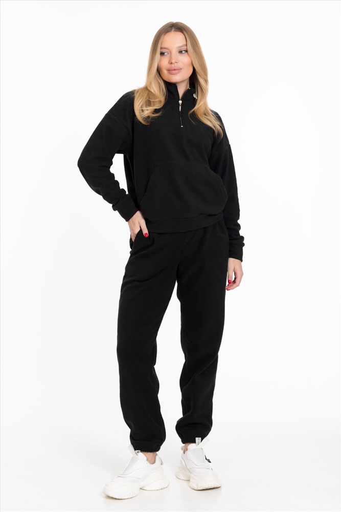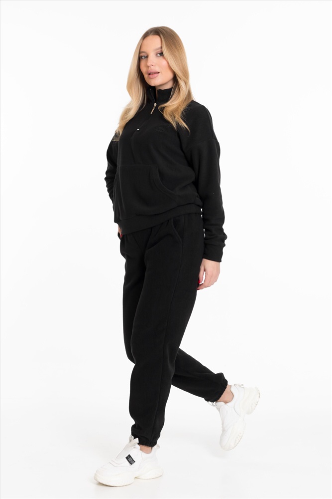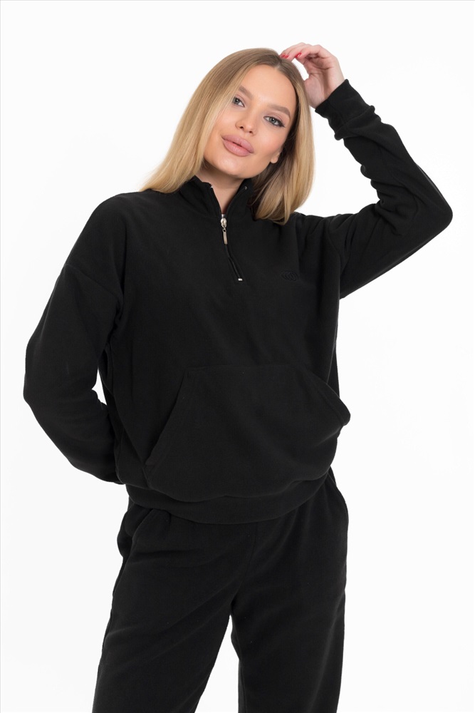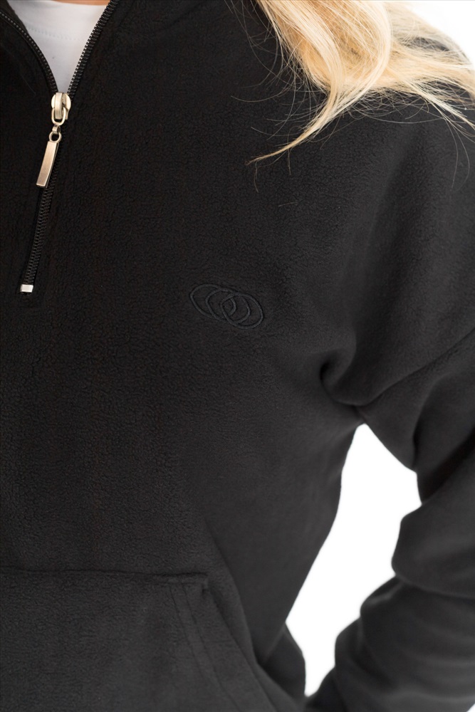 Женская толстовка — отличный выбор для повседневной носки. Она изготовлена из мягкого и тёплого однотонного флиса черного цвета, который обеспечивает комфорт в прохладную погоду.
