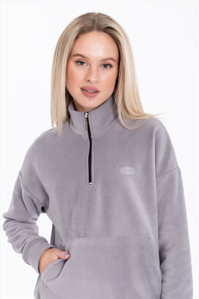 Застежка: Молния С капюшоном: Нет С карманами: Да Сезон: Зимний Силуэт: Свободный Состав: Полиэстер 100% Цвет Номенклатуры: серый Женская толстовка из флиса серого цвета представляет собой прекрасный выбор для холодной погоды, сочетая в себе функциональность и стиль. Воротник-стойка с короткой застежкой на молнию добавляет изящество и удобство, позволяя легко регулировать тепло. Вышивка на передней части придаёт индивидуальность и женственный акцент. Карман-кенгуру не только практичен для хранения мелочей, но и идеален для согревания рук в прохладную погоду. Манжеты на рукавах и притачной пояс по низу толстовки обеспечивают хорошую посадку и защищают от проникновения холодного воздуха, поддерживая комфортную температуру. Эта модель идеально подойдет для ежедневного использования, будь то прогулка на свежем воздухе или уютный вечер дома. Комментарии к товару