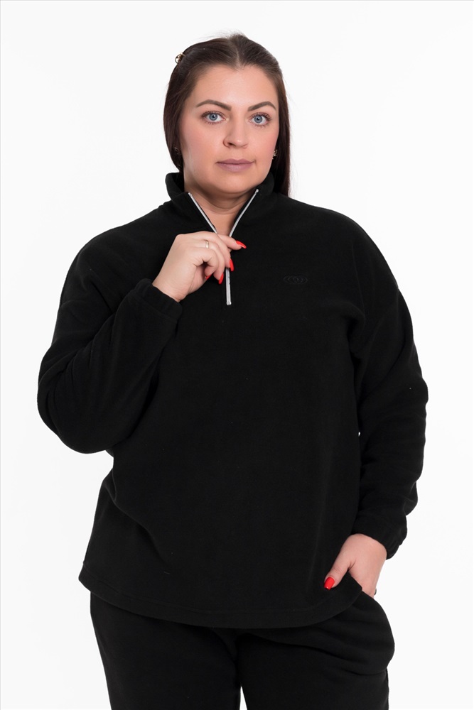 Застежка: Без застежки С капюшоном: Нет С карманами: Нет Сезон: Зимний Силуэт: Свободный Состав: Полиэстер 100% Цвет Номенклатуры: черный Женская толстовка свободного кроя — отличный выбор для повседневной носки. Она изготовлена из мягкого и тёплого флиса, который обеспечивает комфорт в прохладную погоду. Толстовка имеет воротник-стойку, который защищает от ветра, короткую застёжку на молнию спереди контрастного цвета и удобные рукава на резинке. На передней части толстовки расположена вышивка, что придает изделию оригинальность. Такая модель однотонного черного цвета отлично сочетается с джинсами или брюками. Эта толстовка идеально подойдёт для прогулок, активного отдыха или домашней носки. Она выполнена из качественного материала, который сохраняет форму и цвет после стирки. Комментарии к товару
