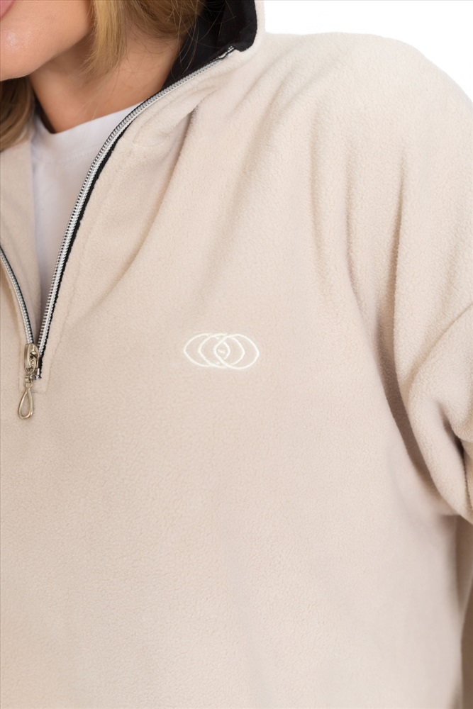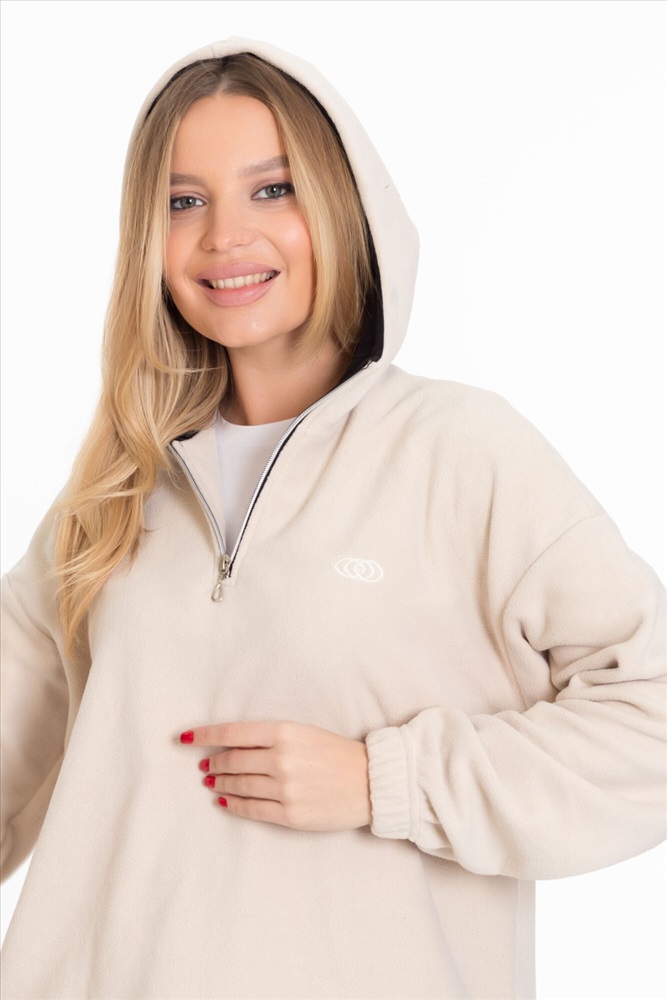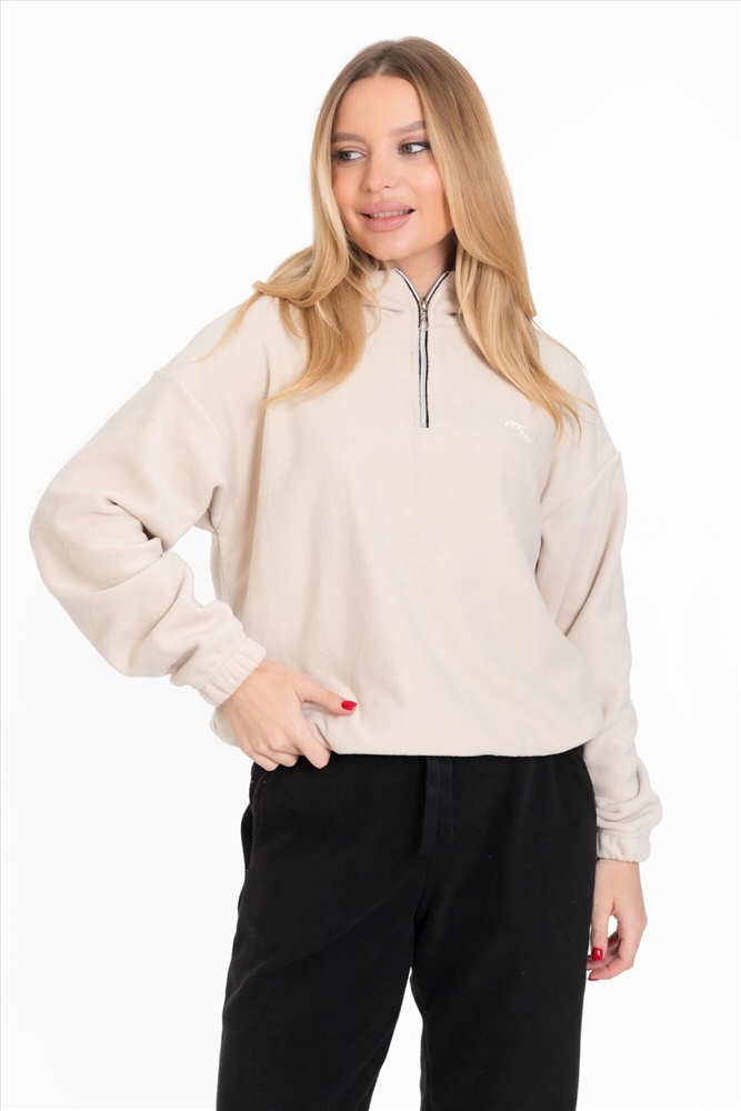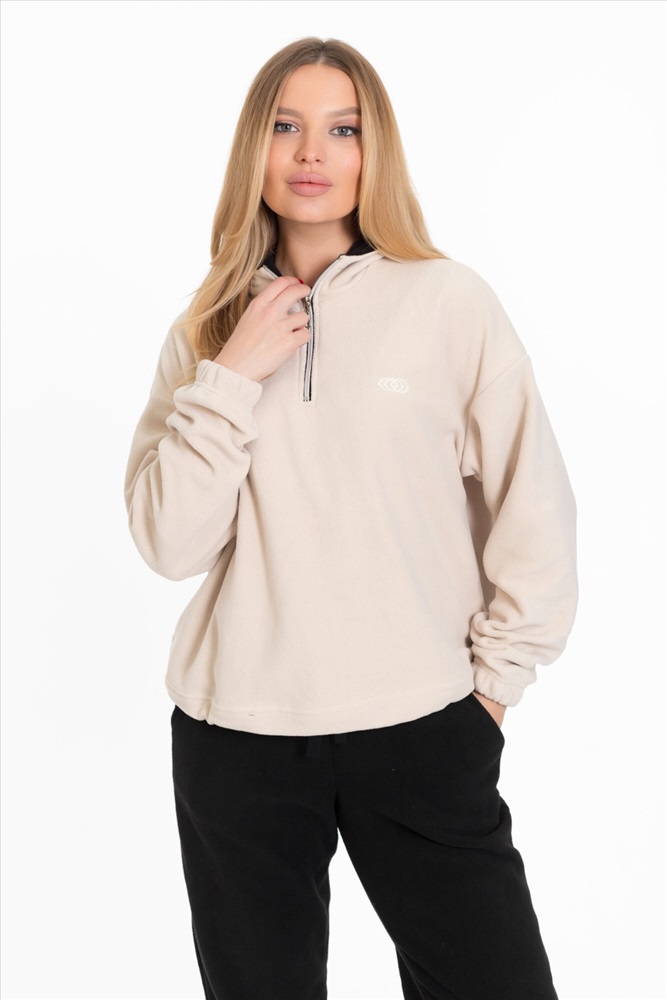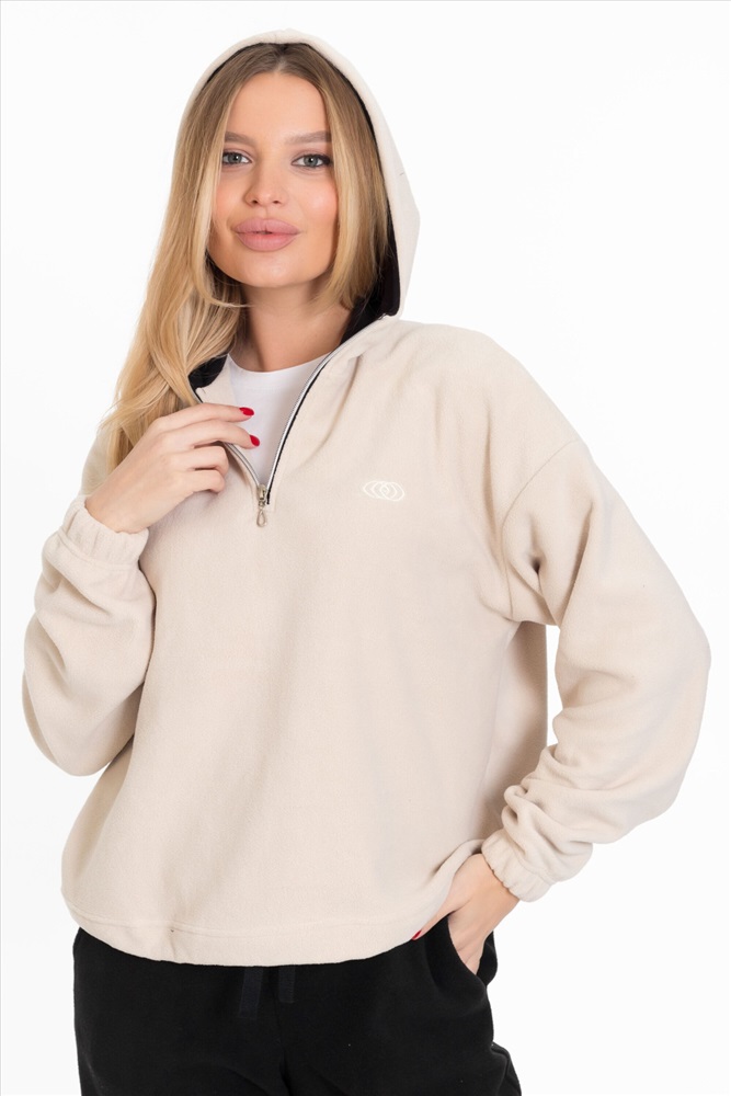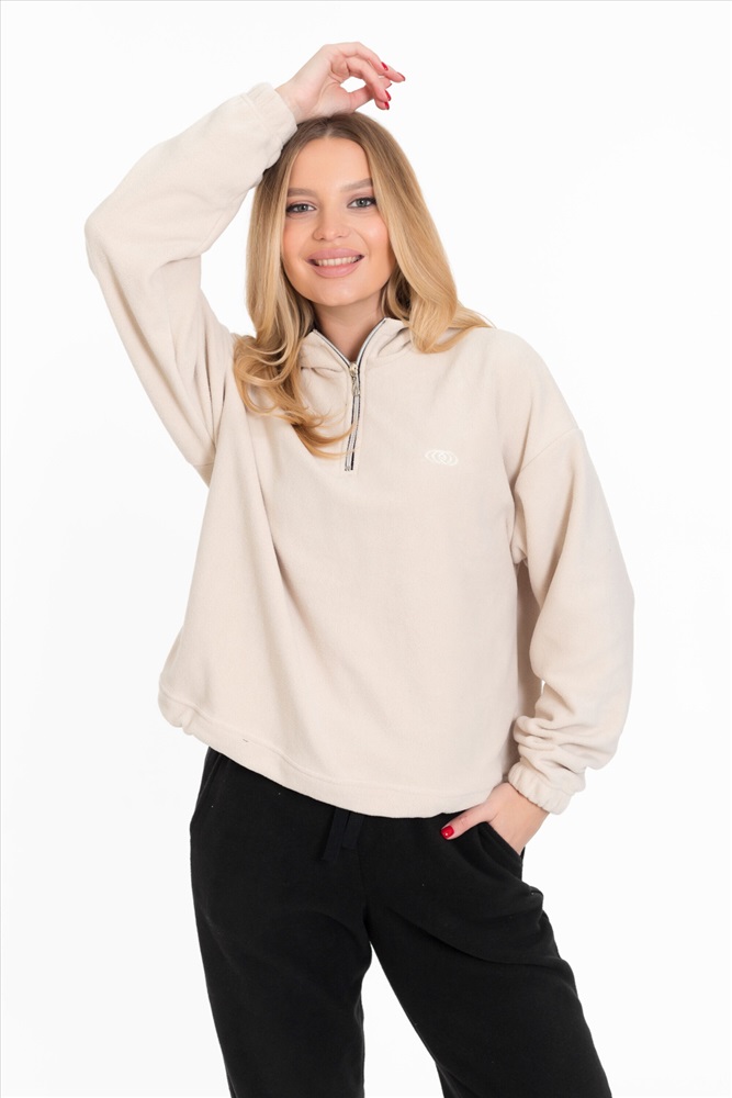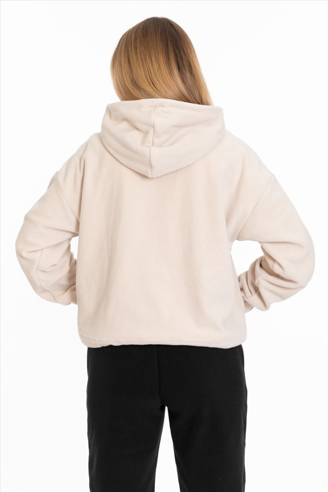 Женская толстовка из мягкого и тёплого однотонного флиса цвета экрю, который обеспечивает комфорт в прохладную погоду.