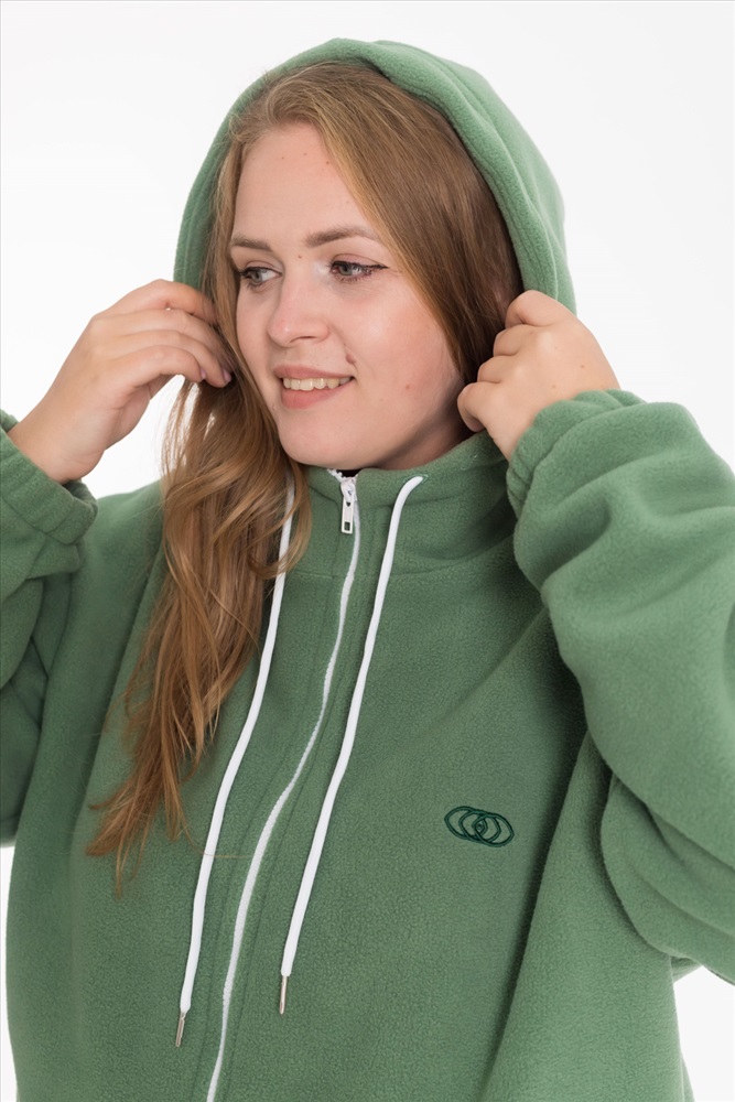 Застежка: Молния С капюшоном: Да С карманами: Да Сезон: Всесезонный Силуэт: Свободный Состав: Полиэстер 100% Цвет Номенклатуры: полынь Женская толстовка свободного кроя — отличный выбор для повседневной носки. Она изготовлена из мягкого и тёплого однотонного флиса, который обеспечивает комфорт в прохладную погоду. Толстовка имеет воротник-стойку, удобный капюшон и рукава на манжете с резинкой для защиты от ветра. Центральная застёжка на молнию и шнур в капюшоне выполнены в белом цвете, что придает изделию оригинальность. В накладные карманы удобно поместить необходимые мелочи. На передней части толстовки расположена вышивка. Эта толстовка идеально подойдёт для прогулок, активного отдыха или домашней носки. Она выполнена из качественного материала, который сохраняет форму и цвет после стирки, не скатывается. Комментарии к товару