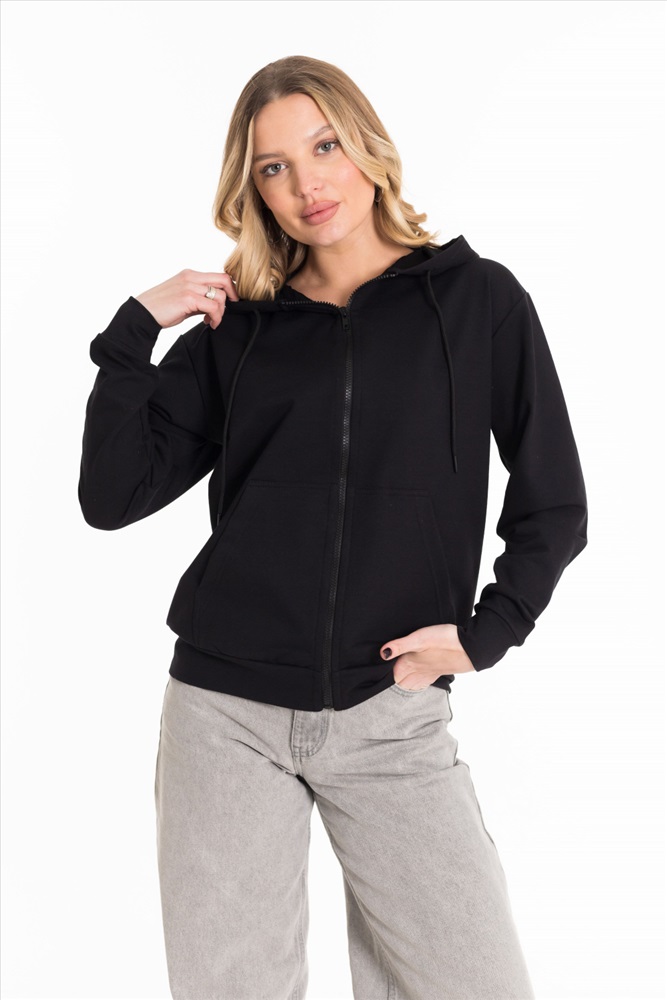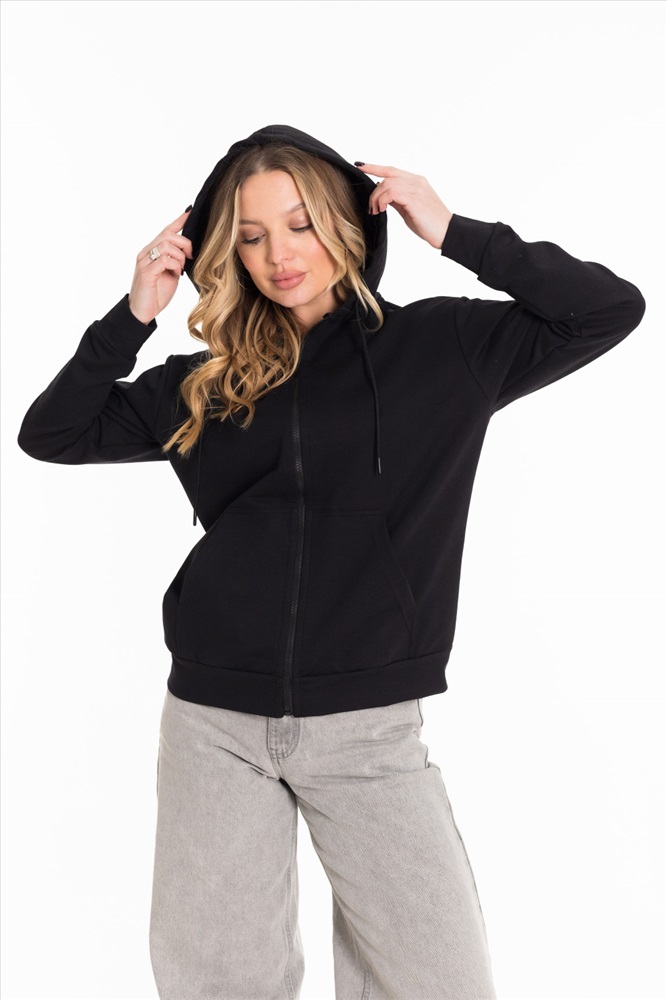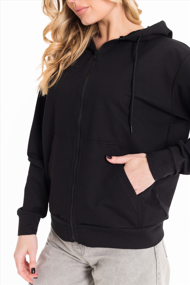 Застежка: Молния С капюшоном: Да С карманами: Да Сезон: Всесезонный Силуэт: Свободный Состав: Хлопок 72% Полиэстер 20% Лайкра 8% Цвет Номенклатуры: черный Толстовка базовой модели выполнена из футер петли. Линия плеча чуть спущена, капюшон со шнуром, манжеты рукавов и пояс изделия из основного полотна. Спереди карманы и застежка на молнию. Комментарии к товару