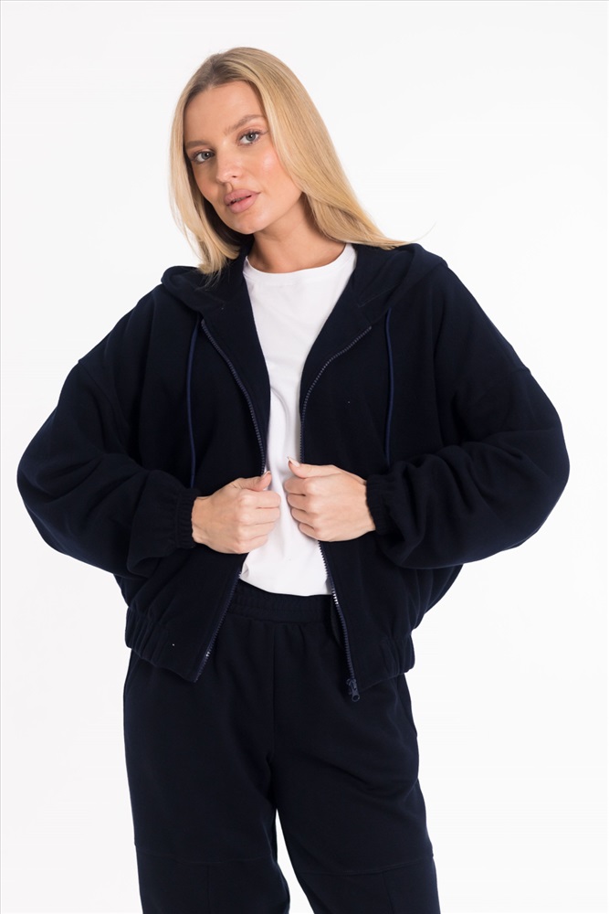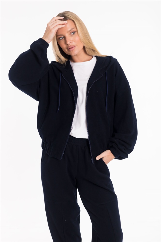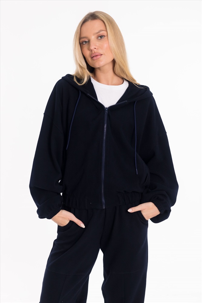 Женская укороченная толстовка oversize выполнена из мягкого трикотажного полотна "силаник". Модель с капюшоном на шнуре, спущенной линией плеча и длинными рукавами на резинке. Спереди — удобные карманы. Пояс также на резине. Застежка на молнию делает изделие практичным и удобным в носке.