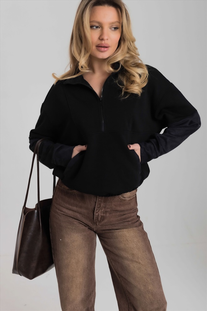 Застежка: Молния С капюшоном: Нет С карманами: Да Сезон: Всесезонный Силуэт: Свободный Состав: Хлопок 80% Полиэстер 20% Цвет Номенклатуры: черный Толстовка сшита из двух полотен :основной футер 3х нитка и отделочный замша.Спереди расположены прорезные карманы, Застежка короткая-молния, в подгибке низа вставлена резинка. Размеры 40-52 Комментарии к товару