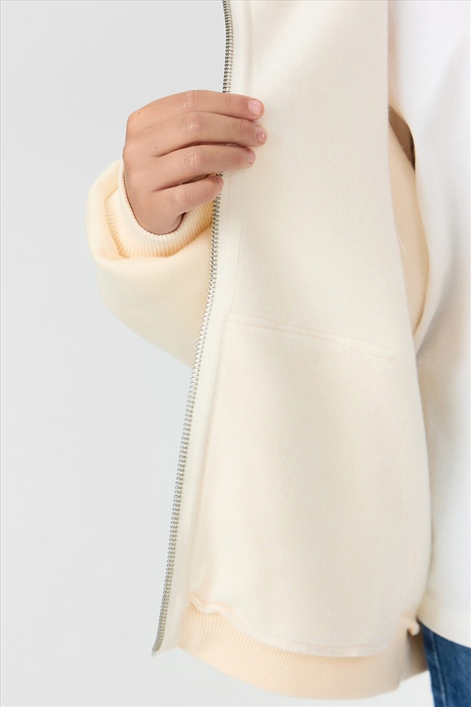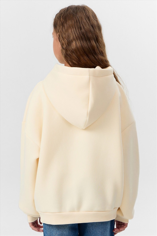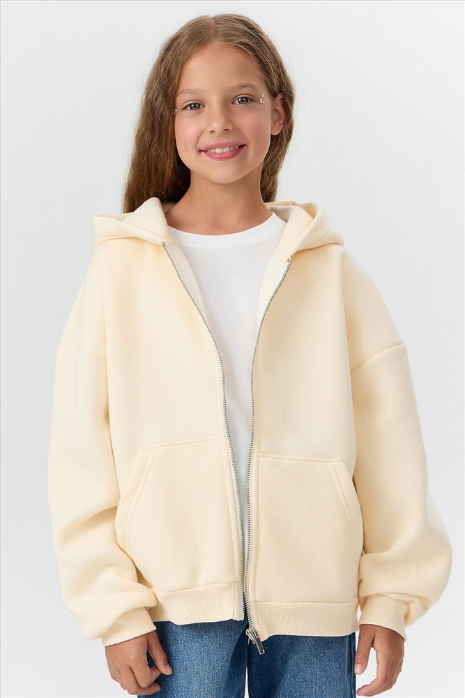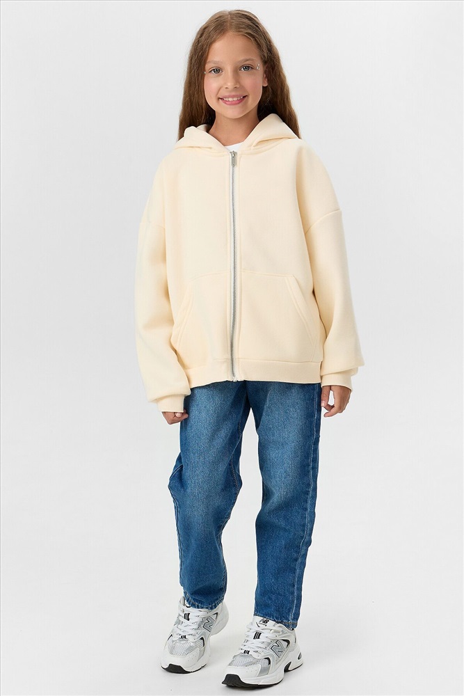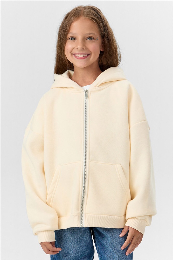 Страна производства: Беларусь Толстовка свободного силуэта, с капюшоном. Горловина округлой формы. Капюшон на подкладке из основного полотна. Рукава втачные длинные, плечо спущено. По низу рукава отрезная манжета из рибаны. Центральная застежка на тесьму молнию. По переду накладные карманы кенгуру. Пояс отрезной из рибаны.