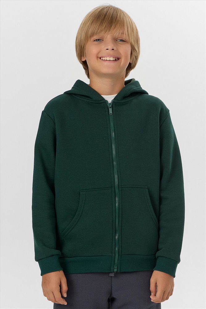 Стильная спортивная толстовка на молнии для мальчиков. Выполнена из теплого и нежного трикотажного футера с подчесом. Прямой свободный силуэт дополнен уютным капюшоном и удобным карманом-кенгуру. Рукава длинные, линия плеча немного спущена. Рекомендуем для прохладной погоды!