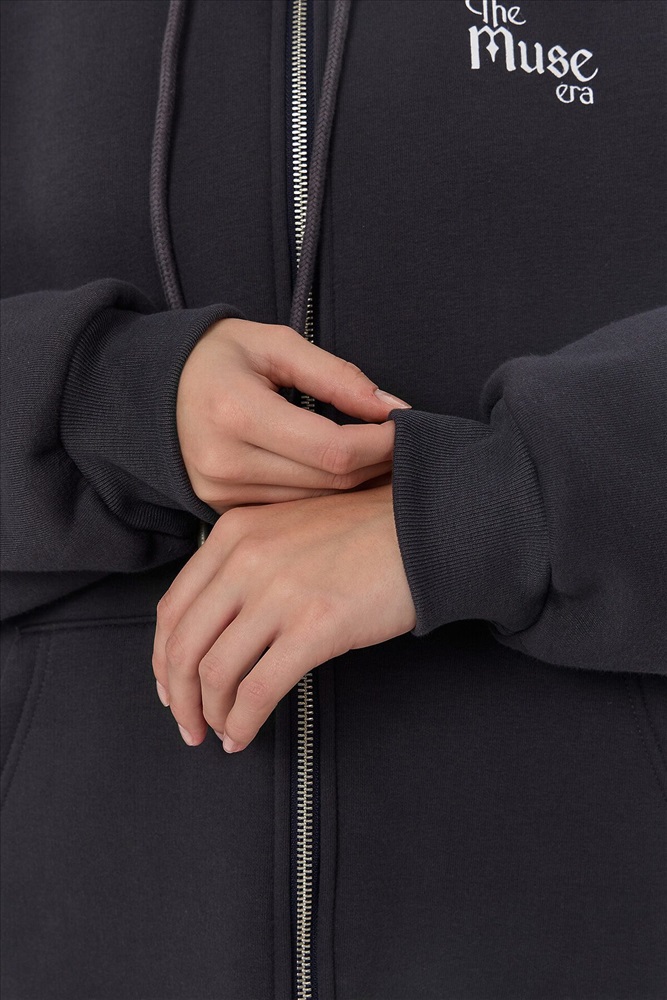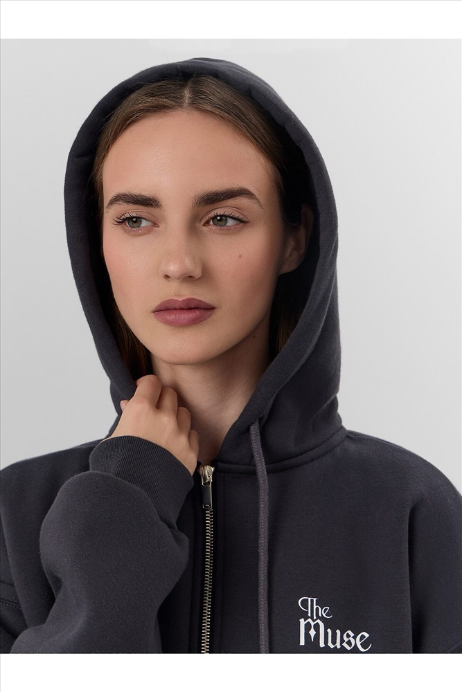 ID товара: 1213442 Состав: 65% Хлопок; 35% Полиэстер Сезон: Осень/Зима Длина: Средняя Фасон: Свободный Рукав: длинные Вид застежки: Молния Вырез горловины: Капюшон Рисунок: Надпись Тип карманов: Кенгуру Декоративные элементы: Без элементов Утеплитель: Без утепления Основная ткань: Хлопок Стиль: Повседневный Уход: Деликатная стирка при 30 градусах Фактура материала: Футер с подчесом Страна бренда: Беларусь Страна производства: Беларусь Женская толстовка — это универсальная модель прямого кроя для повседневной носки. Модель выполнена из уютного футера с начесом, который обеспечивает дополнительную мягкость и отлично сохраняет тепло. Основой материала служит высококачественный хлопок, что делает изделие особенно комфортным для повседневной носки. Удобная застежка-молния, регулируемый капюшон на кулиске и эластичные манжеты из рибаны обеспечивают аккуратную посадку. Свободный силуэт со спущенным плечом подходит для разных типов фигуры. Сочетайте толстовку с джинсами, брюками или леггинсами — она станет универсальной основой для стиля кэжуал. Наденьте с кроссовками для прогулки или с высокими ботинками для поездки за город — в этой модели вы будете чувствовать себя удобно в течение всего дня. Широкий размерный ряд позволяет подобрать вариант для любого телосложения. Комментарии к товару