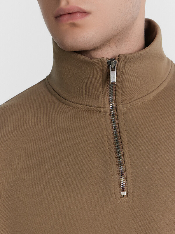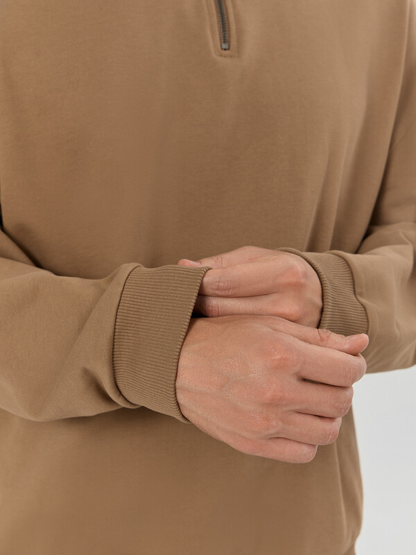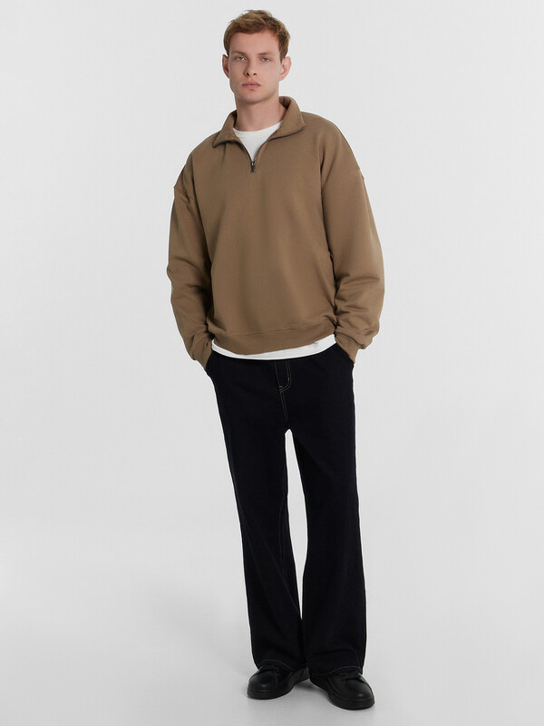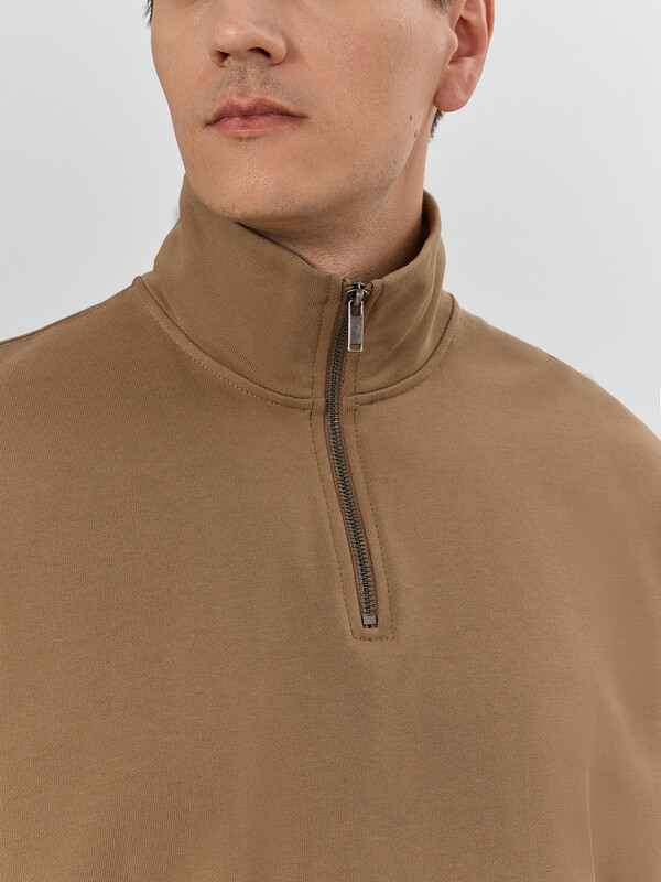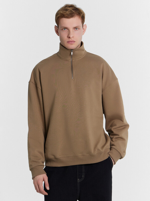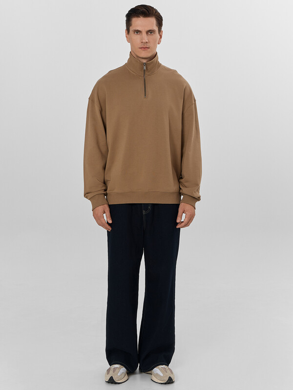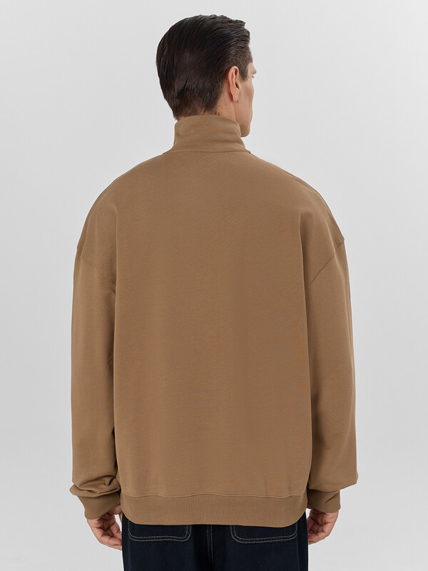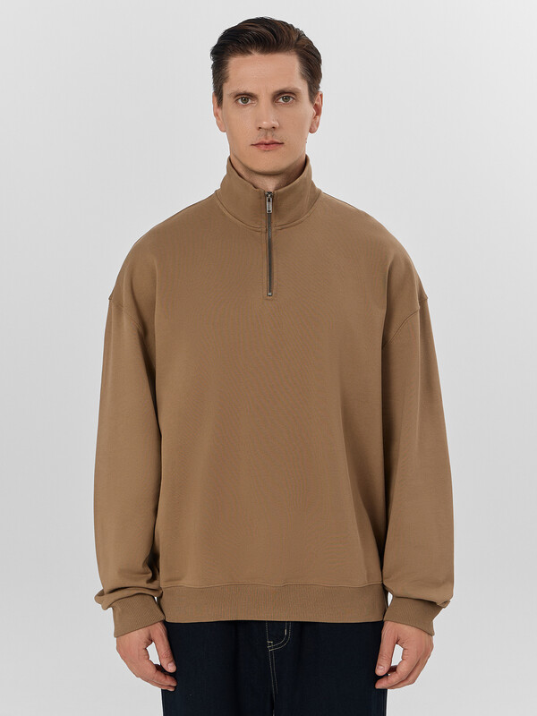 Мужская толстовка свободного силуэта с воротником-стойкой, выполненная из футера без подчеса, обеспечивающего мягкость и комфорт каждый день. Длинные рукава с манжетами и спущенной линией плеча добавляют дополнительное удобство, а центральная застежка на молнию обеспечивает практичность и легкость в носке. Эта толстовка станет незаменимой частью вашего гардероба, сочетая в себе комфорт, стиль и высокое качество.