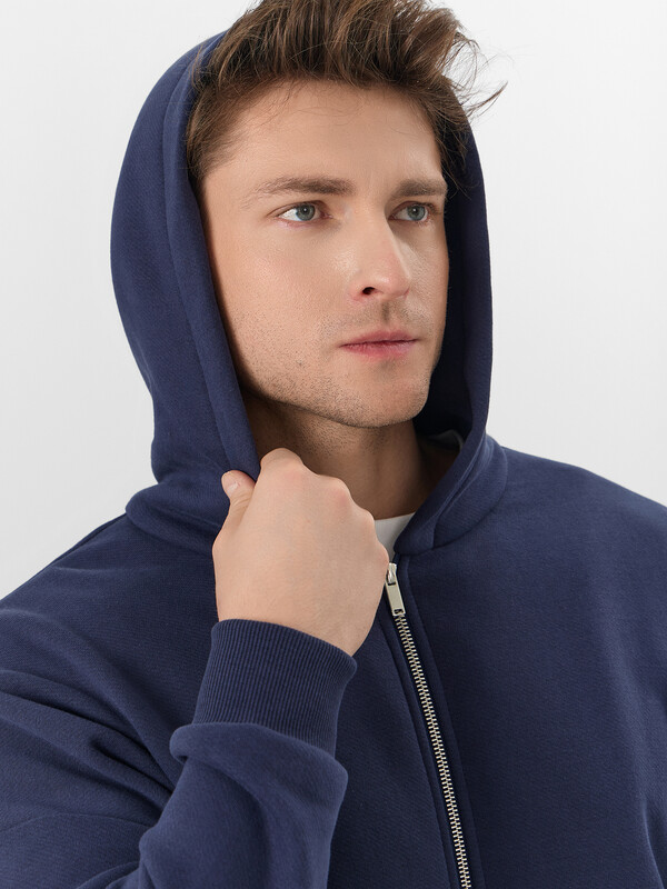 Мужская толстовка на молнии с начесом — это уют и практичность для прохладных дней. Она выполнена из мягкого футера с начесом, который сохраняет тепло и обеспечивает комфорт. Свободный крой со спущенным плечом и длинными рукавами создает расслабленный силуэт, в котором можно свободно двигаться.