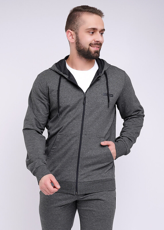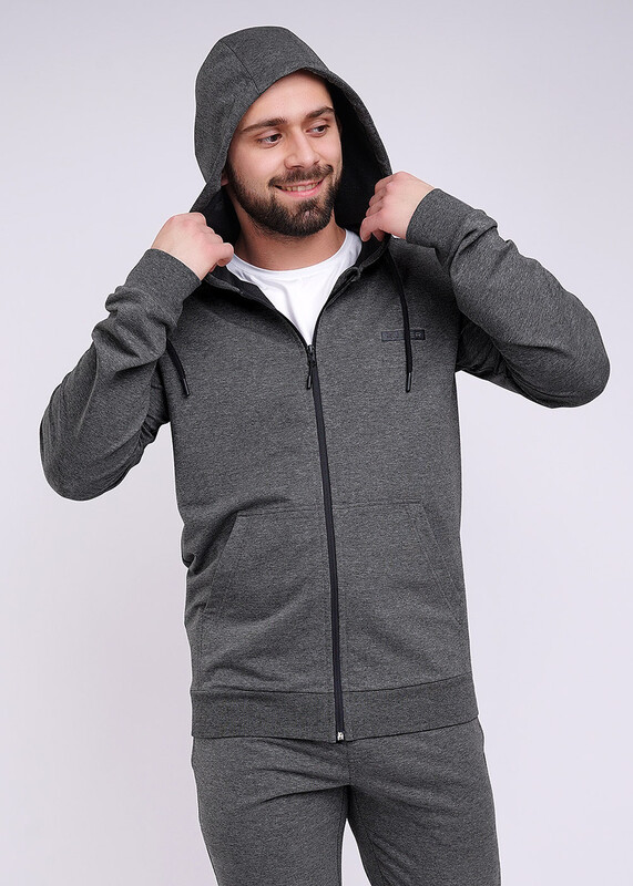 Модная куртка с капюшоном на молнии из плотного трикотажного полотна будет незаменимой вещью в гардеробе любого мужчины, благодаря функциональным карманам ""кенгуру"" и стильной отделке в виде нашивок.