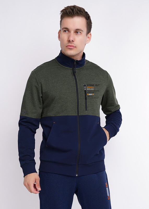 Производитель: Clever Мужская комбинированная толстовка из футера на воротнике-стойка с застежкой-молнией. Для удобства в эксплуатации спереди есть карман-кенгуру. Оригинальности придает текстовый принт на груди.