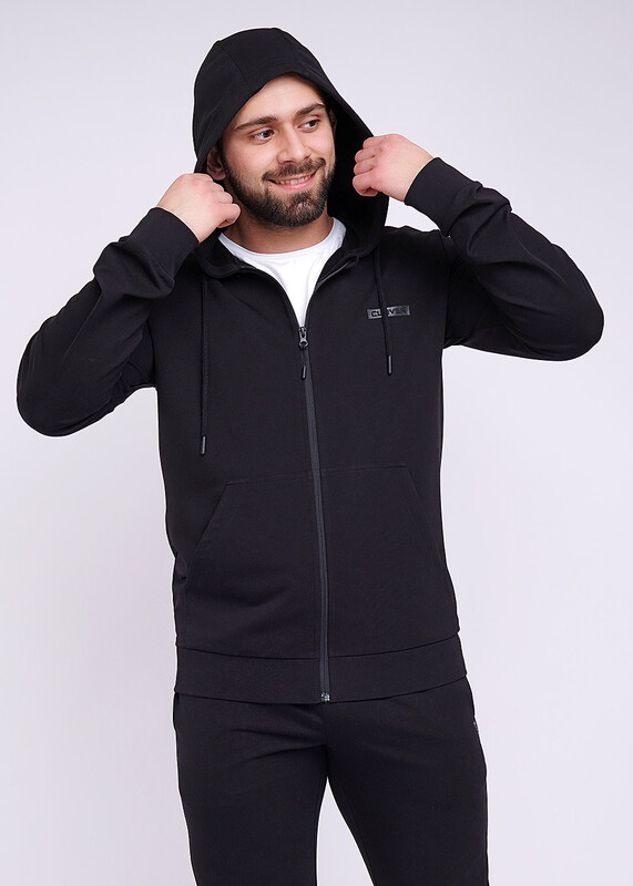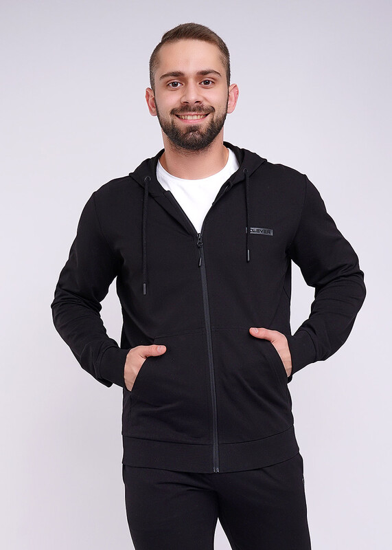 Модная куртка с капюшоном на молнии из плотного трикотажного полотна будет незаменимой вещью в гардеробе любого мужчины, благодаря функциональным карманам "кенгуру" и стильной отделке в виде нашивок.