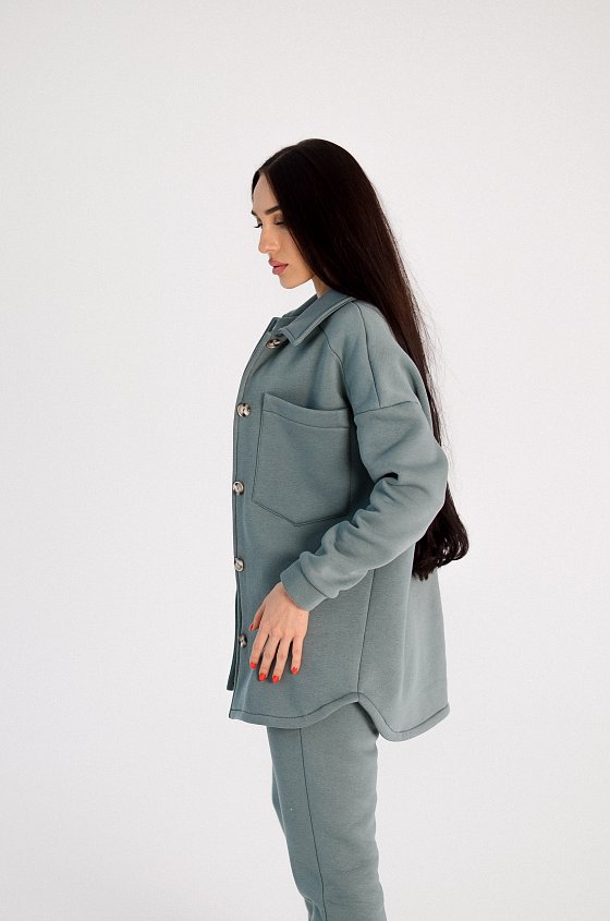 Женская толстовка из мягкого футера с начесом. Элегантная модель с отложным воротником и застежкой на пуговицы. Функциональные накладные карманы на груди и декоративные закругления по бокам. Удобный спущенный рукав на манжете для дополнительного комфорта. Универсальная модель для создания стильных повседневных образов. Теплый и дышащий материал обеспечивает комфорт в прохладную погоду.