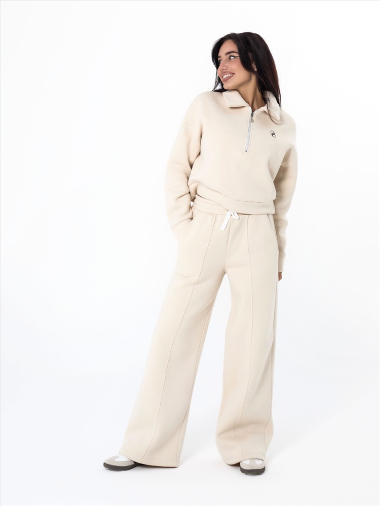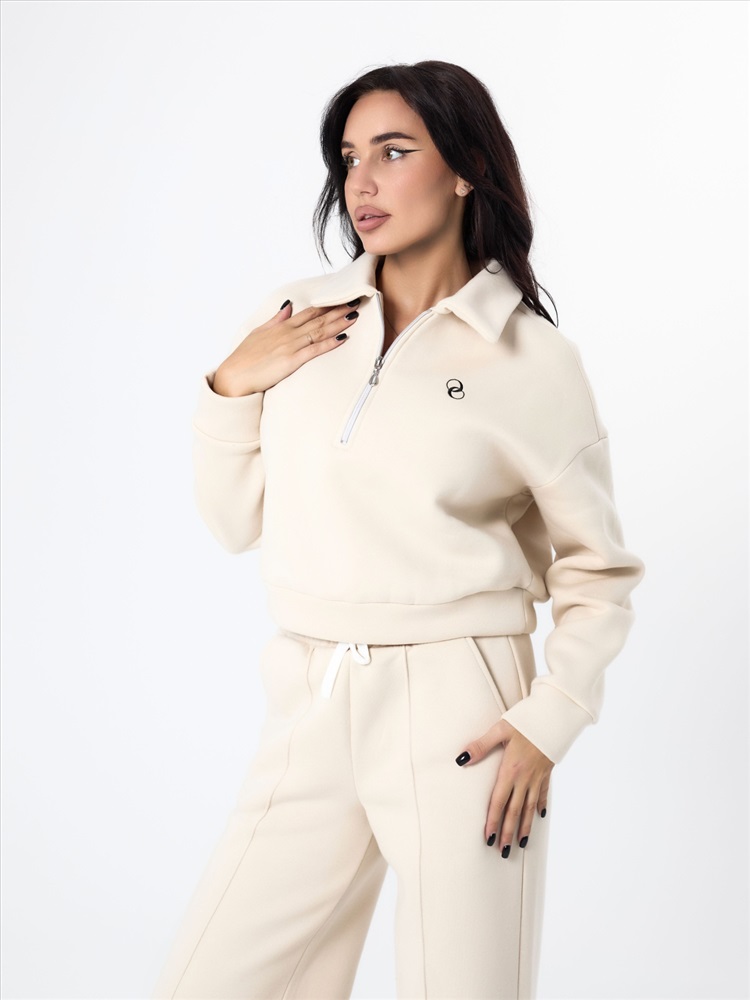 Застежка: Молния С капюшоном: Нет С карманами: Нет Сезон: Зимний Силуэт: Свободный Состав: Полиэстер 30% Хлопок 70% Цвет Номенклатуры: молочный Женская толстовка с застежкой на короткую молнию и спущенной линией плеча. Модель выполнена из футера с начесом. Лаконичный дизайн дополнен стильной вышивкой с левой стороны. Манжеты рукавов и низ изделия оформлены планкой из основного полотна для аккуратного силуэта. Удобная и современная модель для повседневной носки. Рекомендуем сочетать с брюками Арт.323165Wbо. Комментарии к товару