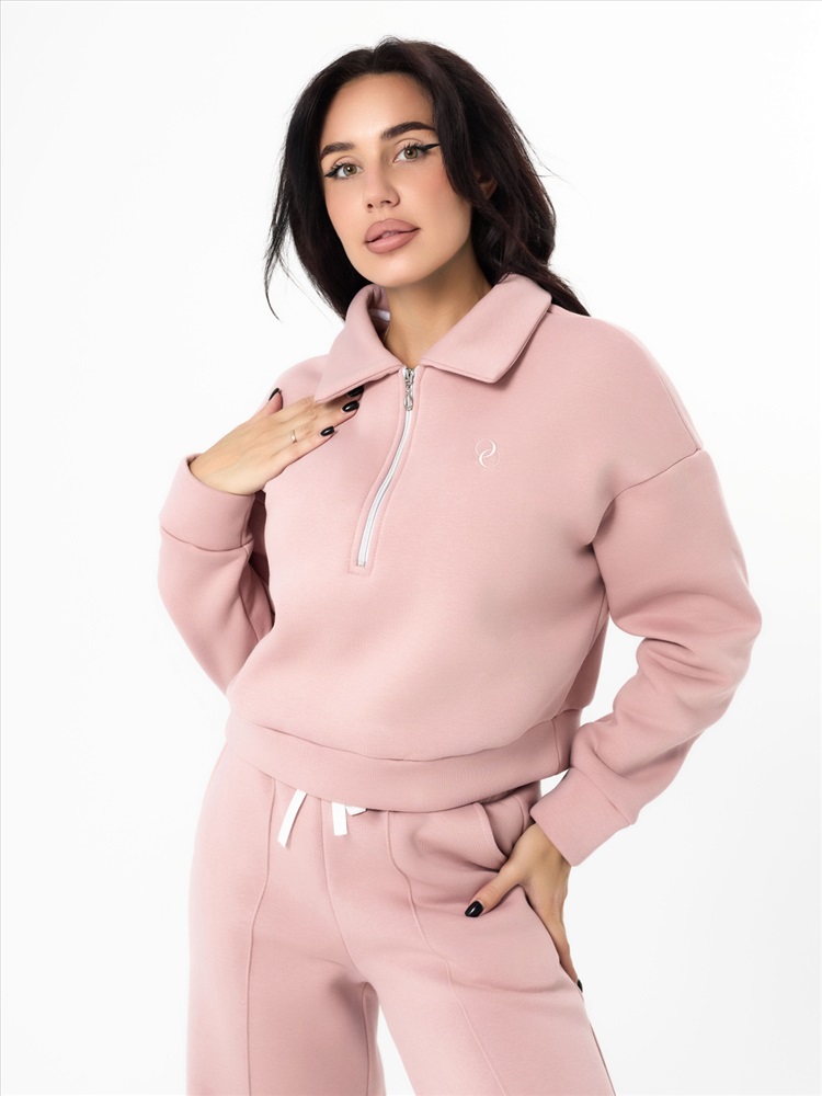 Вид ткани: Футер трехниточный Застежка: Молния С капюшоном: Нет С карманами: Нет Сезон: Зимний Силуэт: Свободный Состав: Полиэстер 30% Хлопок 70% Цвет Номенклатуры: пыльная роза