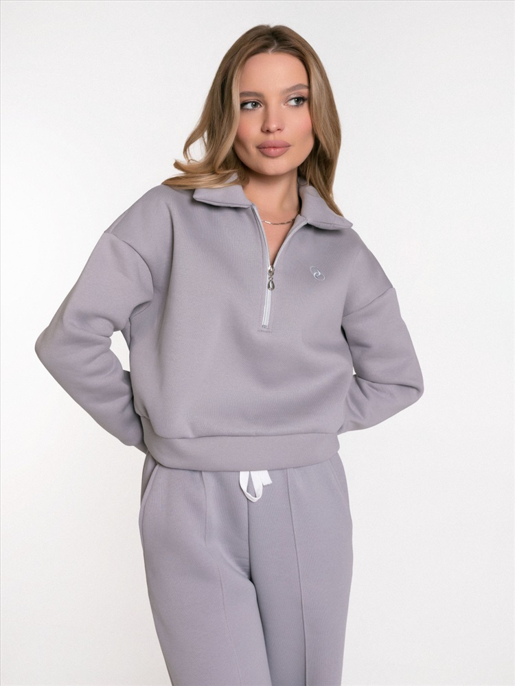 Застежка: Молния С капюшоном: Нет С карманами: Нет Сезон: Зимний Силуэт: Свободный Состав: Полиэстер 30% Хлопок 70% Цвет Номенклатуры: серый Женская толстовка с застежкой на короткую молнию и спущенной линией плеча. Модель выполнена из футера с начесом. Лаконичный дизайн дополнен стильной вышивкой с левой стороны. Манжеты рукавов и низ изделия оформлены планкой из основного полотна для аккуратного силуэта. Удобная и современная модель для повседневной носки. Рекомендуем сочетать с брюками Арт.323165Wbс. Комментарии к товару